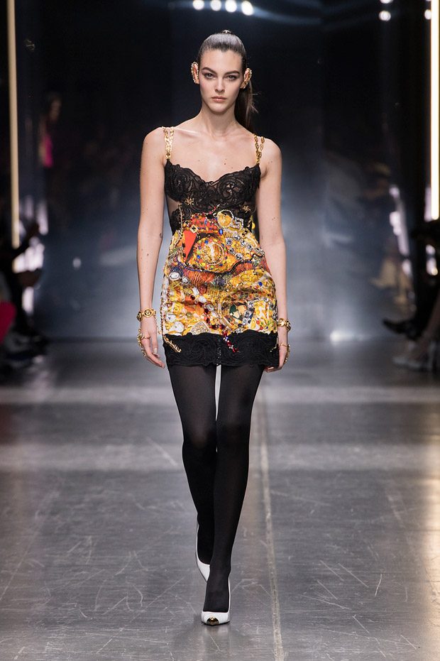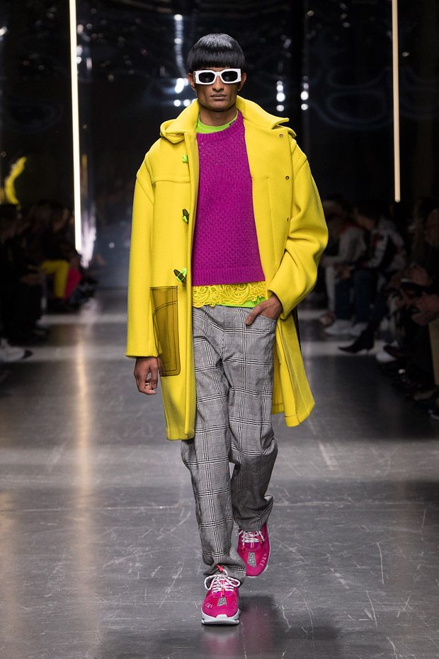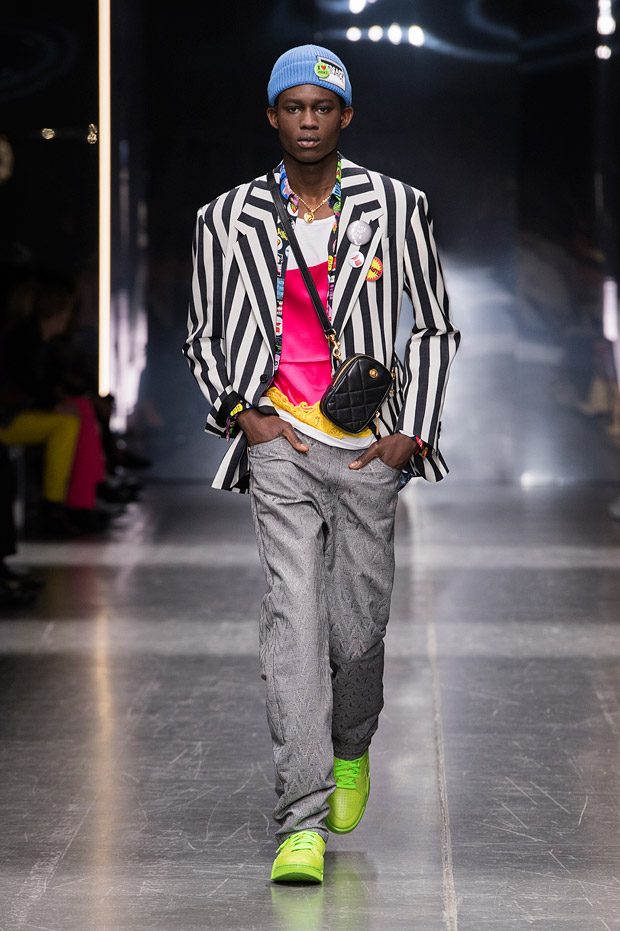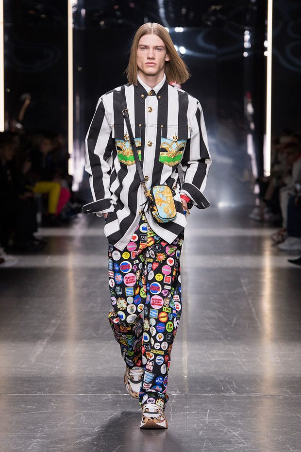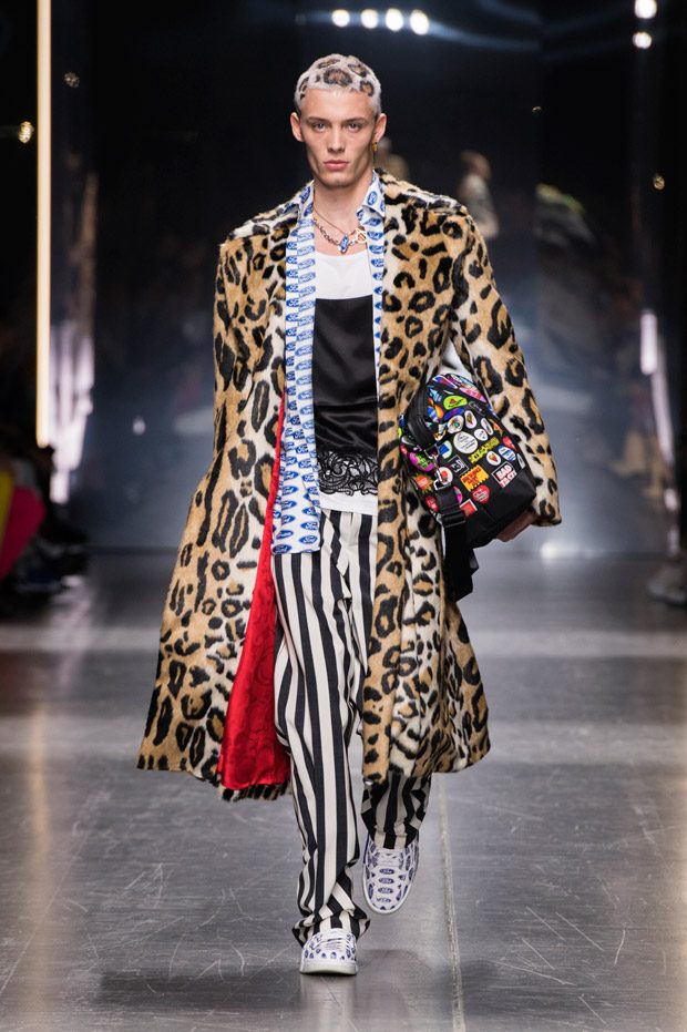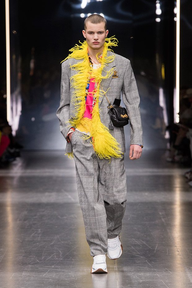 “In the ‘90s there was such a specific idea of A man but, since then, fashion has evolved dramatically and today one cannot define men in just that same, clear way. Everything has changed, and today’s society allows everyone a greater freedom to express themselves with their clothes as well as with their actions. What I wanted to show in this collection are the different facets of a man, who, like everyone, dresses according to the occasion and has gained the courage that he didn’t have before. If I had to find a word that defines today’s men, it would be daring.” – Donatella Versace