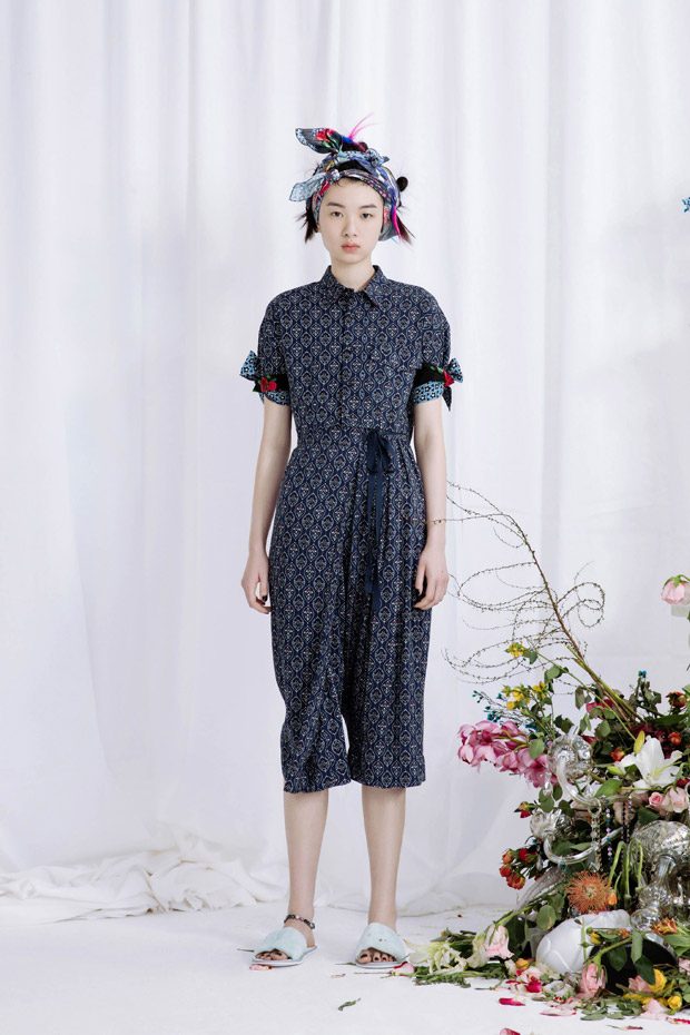 “We incorporated more print than ever before: florals and rose bushes; we also reimagined the windows of Misselthwaite Manor as stained glass and turned it into the print foundation from which we designed. We added secrets for the girls who wear our clothing to discover, secrets which can be found throughout each garment in the form of miniature gold and silver religious iconography as well as allusions to both our favorite retro-futuristic commercial space tug the Nostromo, from Ridley Scott’s Alien, and lucid dream technique. For example, repeatedly reading the phrase “Am I Dreaming” in your waking life would help trigger your conscious brain into realizing you are not awake when you’re unable to read the phrase clearly in your dream life.”