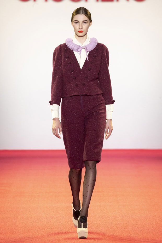 Discover Chocheng‘s Fall Winter 2019.20 collection presented on February 12th, during the recently finished New York Fashion Week. Inspired by Hitchcock’s classic, North by Northwest, the collection explores British tailoring, elegance and precision. The silhouettes are precise and menswear-inspired, in violet, bordeaux, grey, black and white color palette.