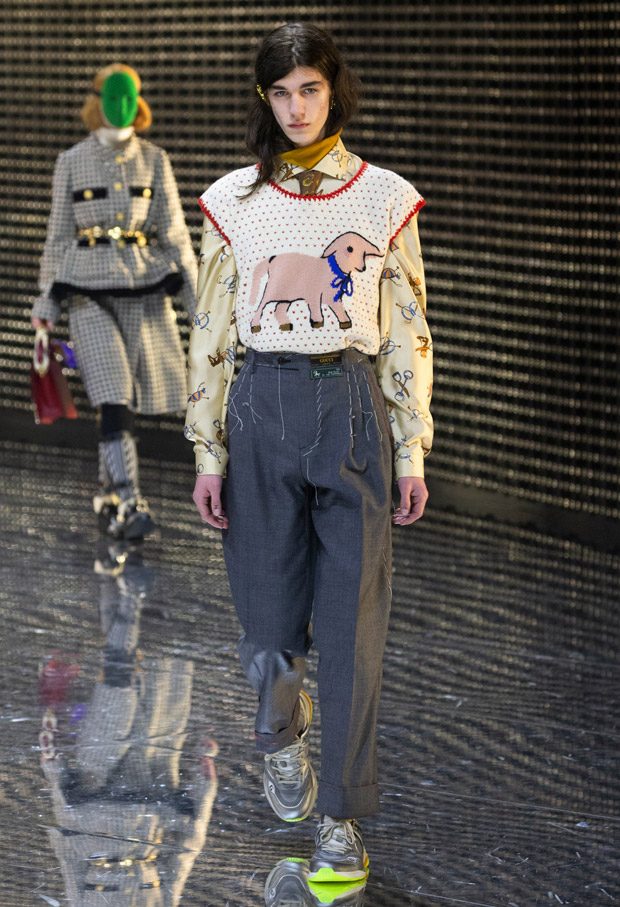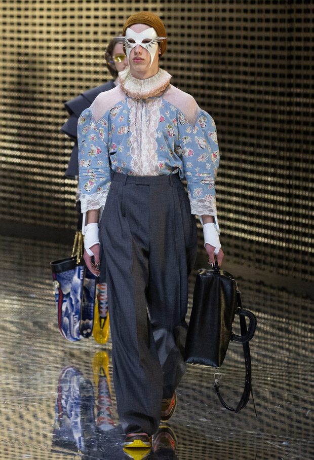 Designer Alessandro Michele presented Gucci‘s Fall Winter 2019.20 The Mask as a Cut Between Visible and Invisible Collection, inspired by the magic ambiguity of masks – the duality between exhibition and concealment, on Wednesday February 20th, during the ongoing Milan Fashion Week.