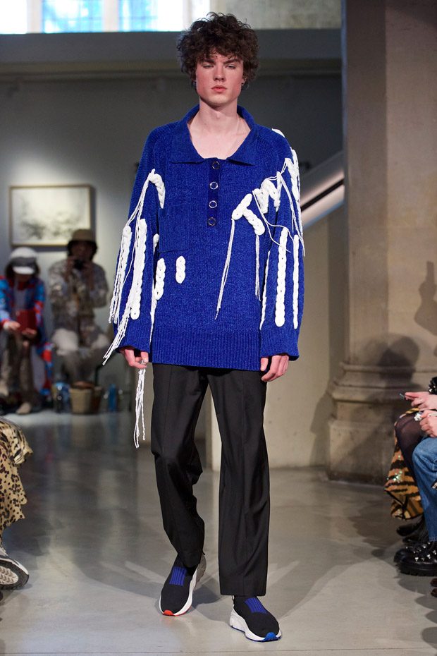 Discover Jamie Wei Huang‘s Fall Winter 2019.20 collection, inspired by song Roaming Boy by Taiwanese indie band No-nonsense Collective, presented during the first day of the ongoing London Fashion Week.