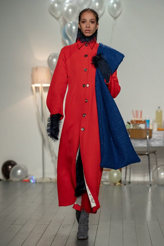 Irish designer Richard Malone presented his Fall Winter 2019.20 Collection, that explores duality and forced politeness, reflecting Brexit anxiety, on Monday February 18th, during the recently finished London Fashion Week.