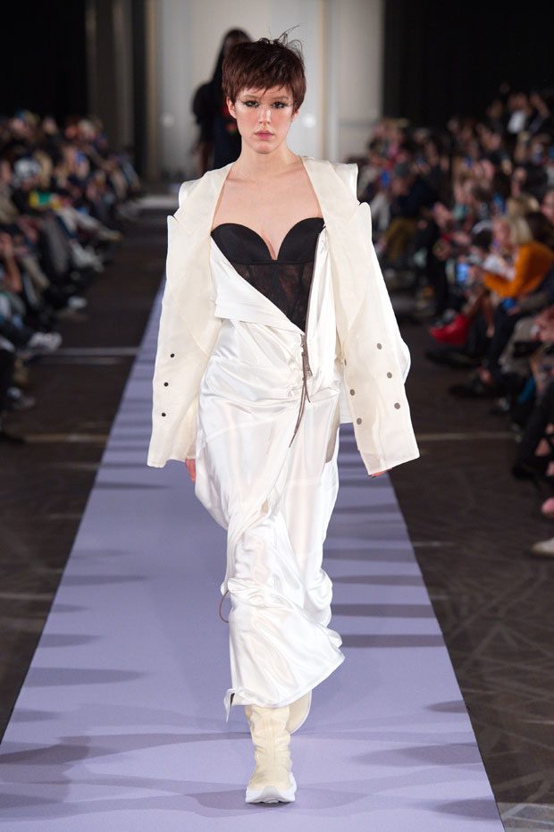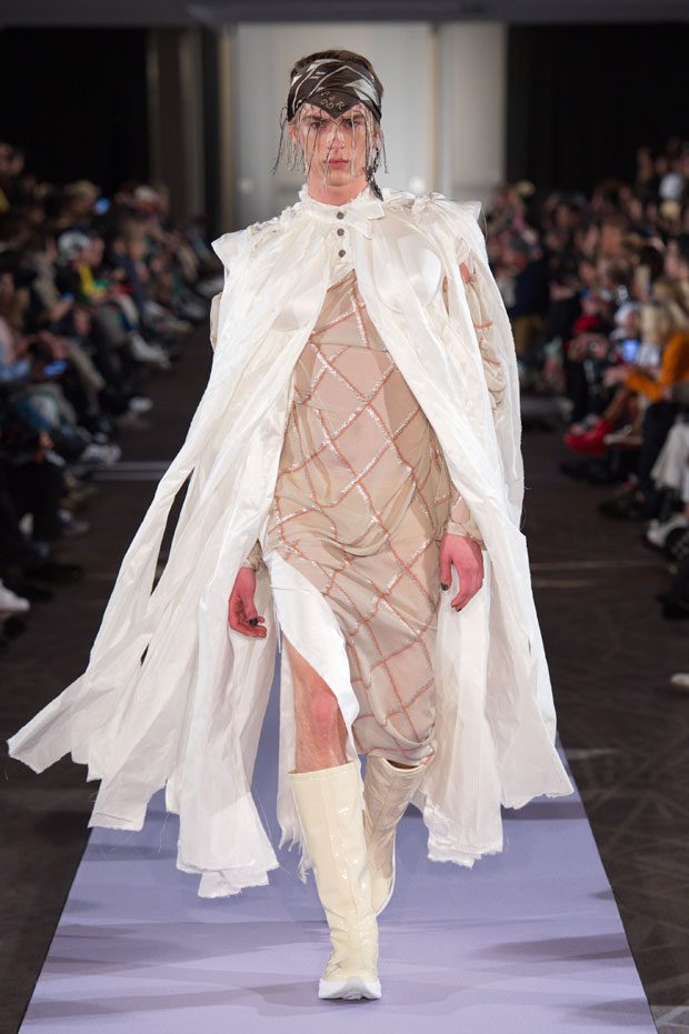 Andreas Kronthaler unveiled his 7th Andreas Kronthaler for Vivienne Westwood collection, on Saturday, March 2nd, during the recently wrapped up Paris Fashion Week. The Fall Winter 2019.20 collection questions the problem of consumerism and overproduction, reducing the garment to its essence.