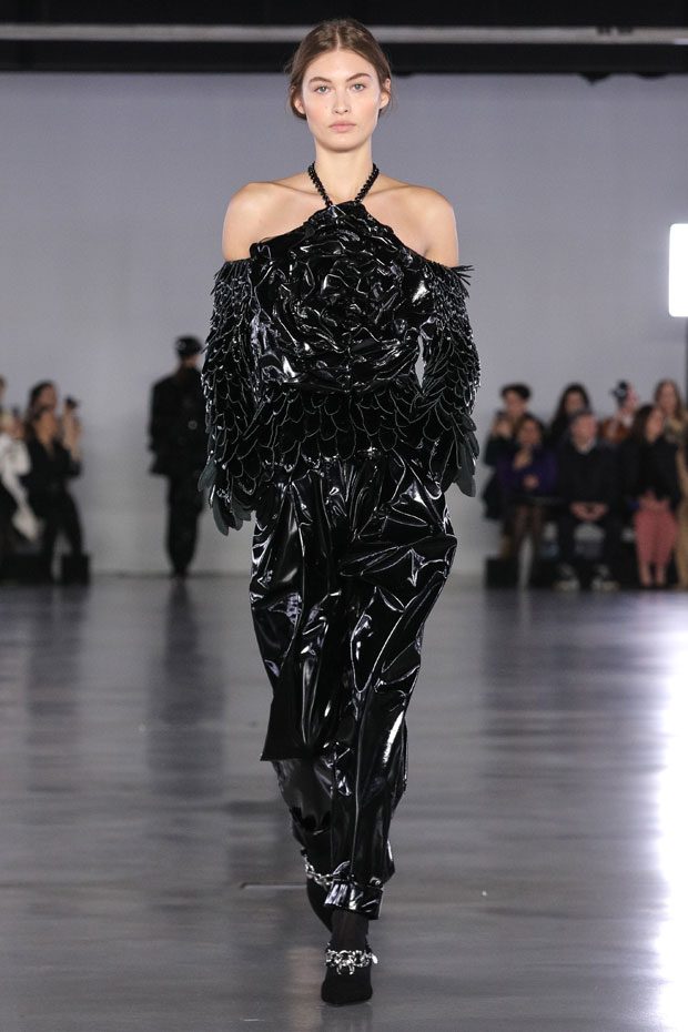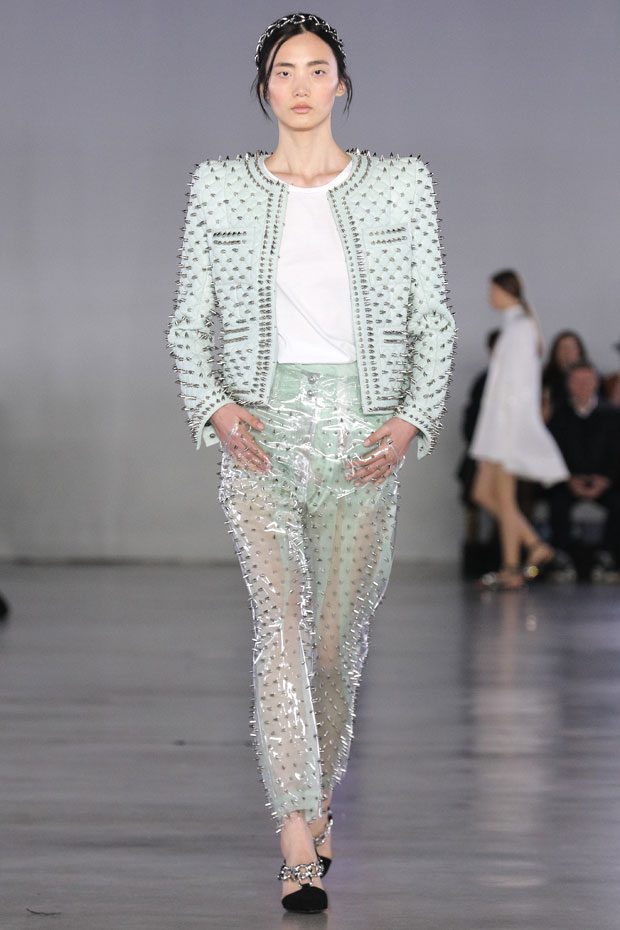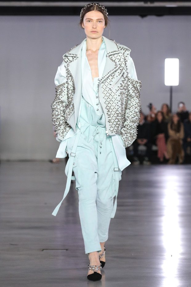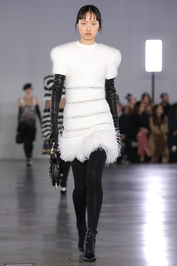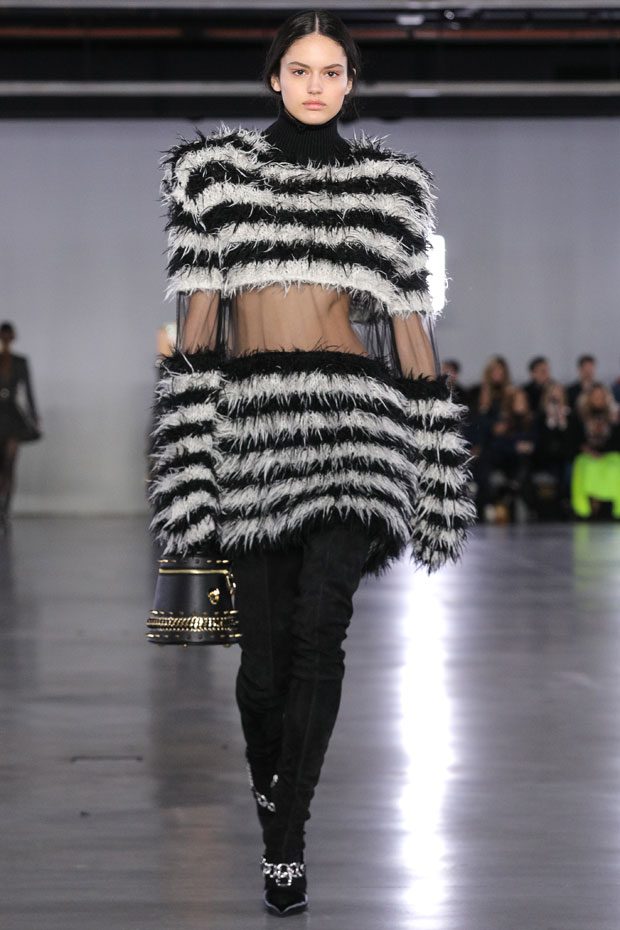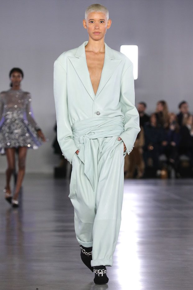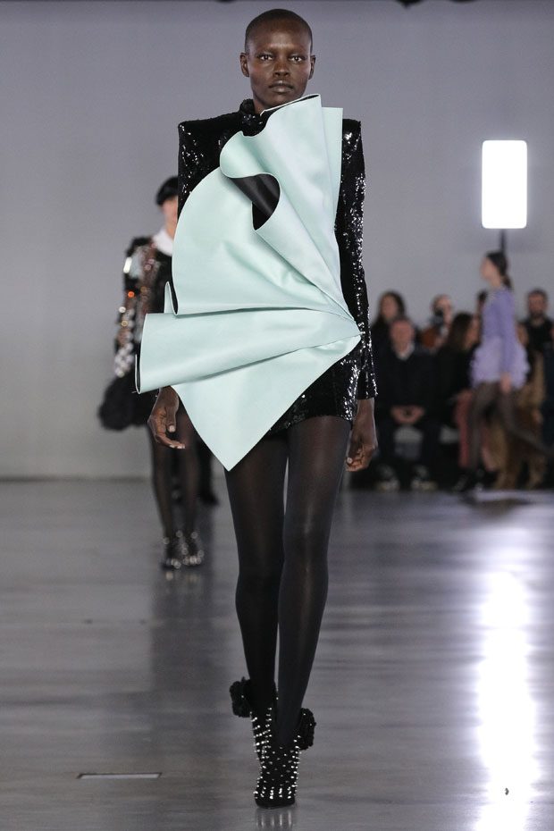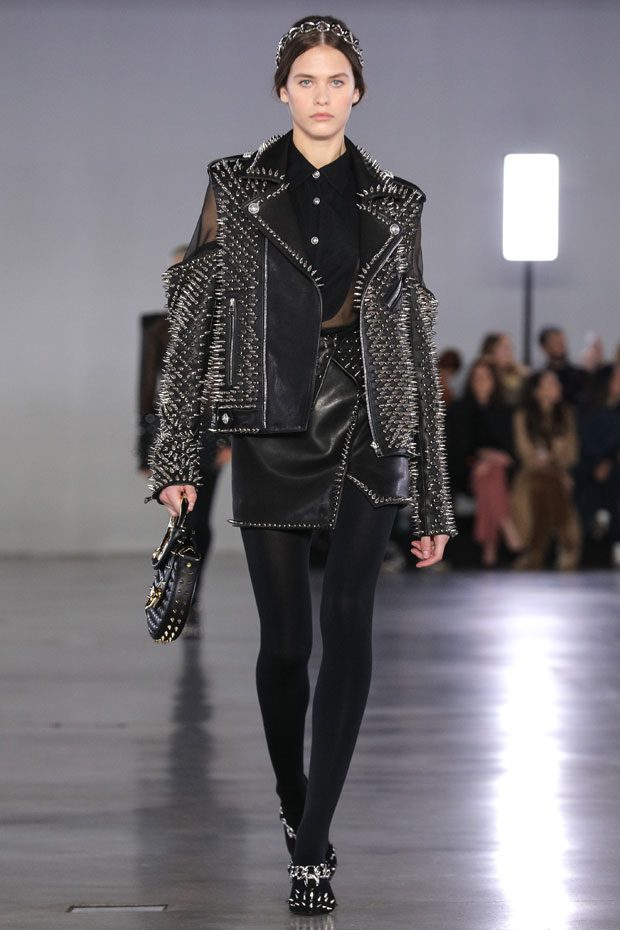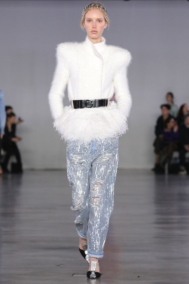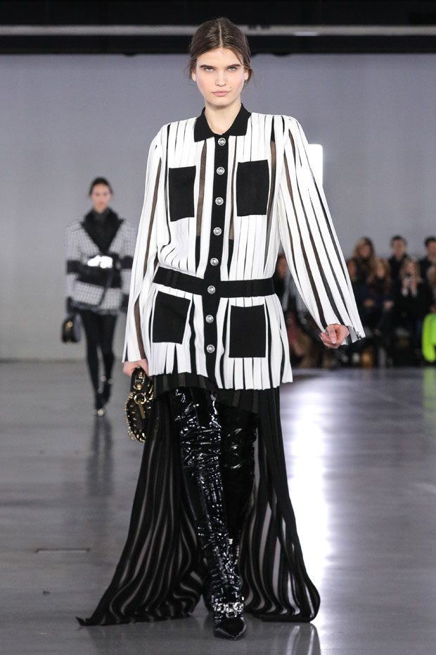 My runway today celebrates a different, invigorating and new type of rebellious spirit, one adopted by increasing numbers of today’s young women. For inspiration, my team and I look to the self-assured women of my generation, who demand control and are not content to simply push back—instead, they revel in pushing forward, (while also pushing every single button along the way). This new attitude might have had its origins in the recent necessity of donning new defensive armor for battles that we had hoped were already won, but it has rapidly evolved, as our young rebelles grow increasingly aware of their own great power, celebrate their strong voices and demand to be heard. – Olivier Rousteing