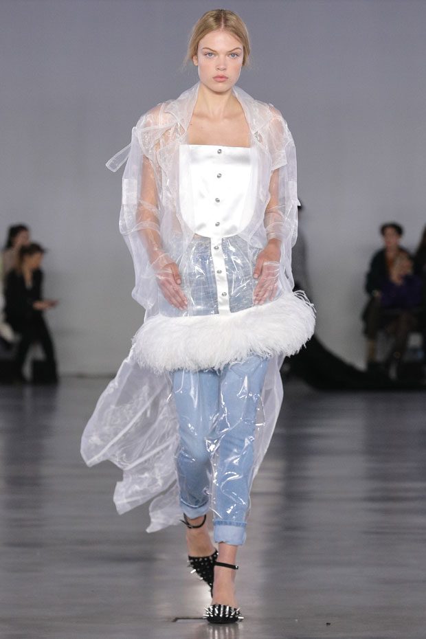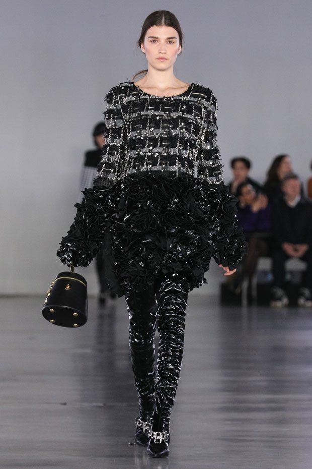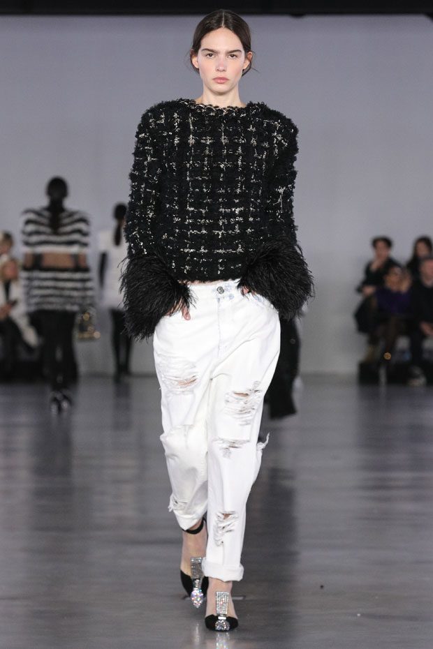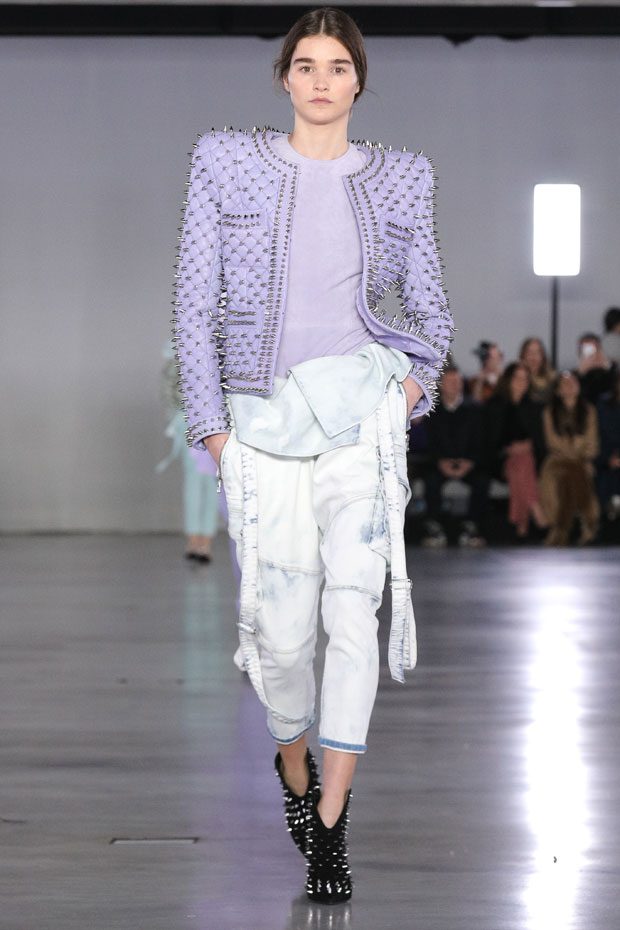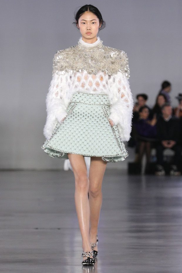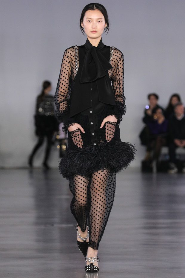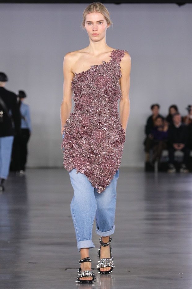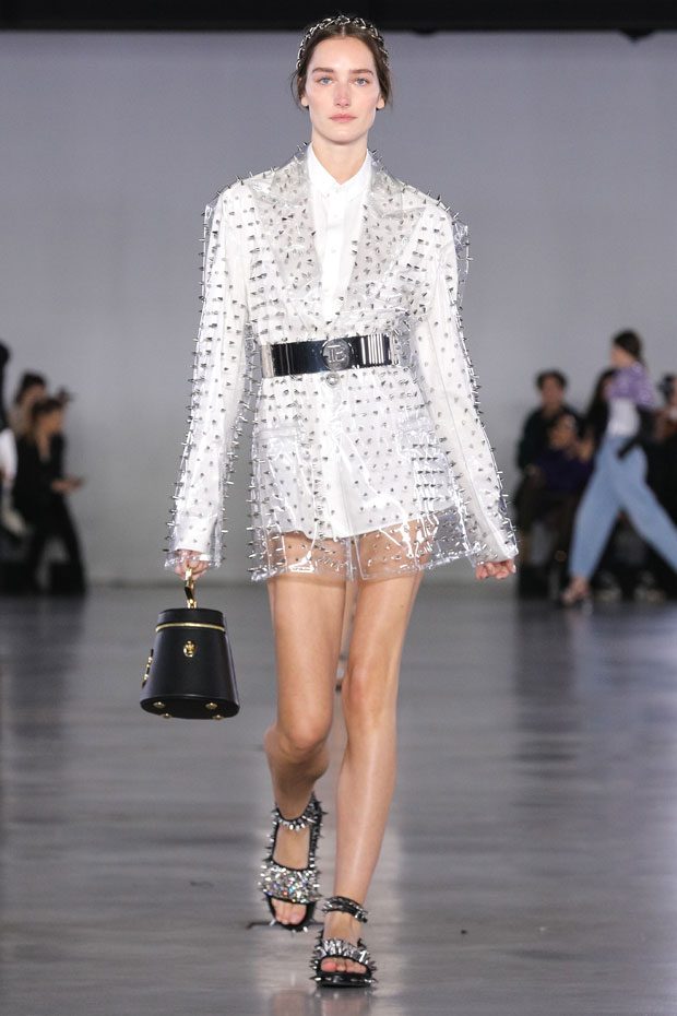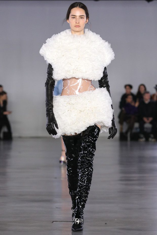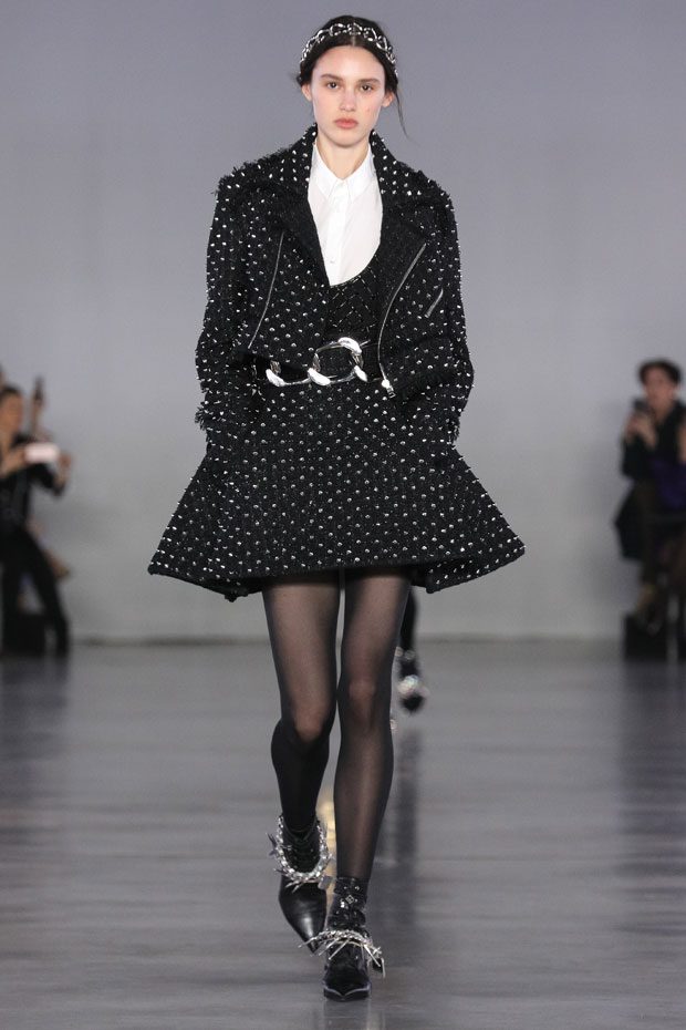 My runway today celebrates a different, invigorating and new type of rebellious spirit, one adopted by increasing numbers of today’s young women. For inspiration, my team and I look to the self-assured women of my generation, who demand control and are not content to simply push back—instead, they revel in pushing forward, (while also pushing every single button along the way). This new attitude might have had its origins in the recent necessity of donning new defensive armor for battles that we had hoped were already won, but it has rapidly evolved, as our young rebelles grow increasingly aware of their own great power, celebrate their strong voices and demand to be heard. – Olivier Rousteing