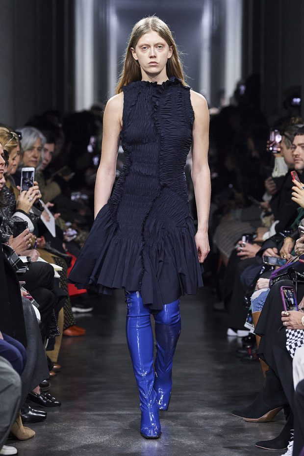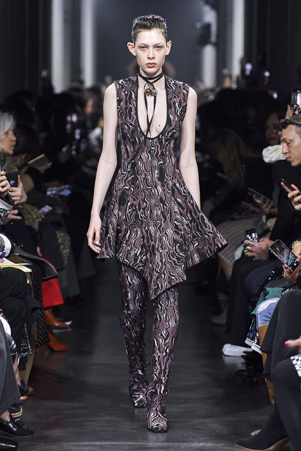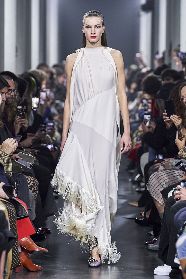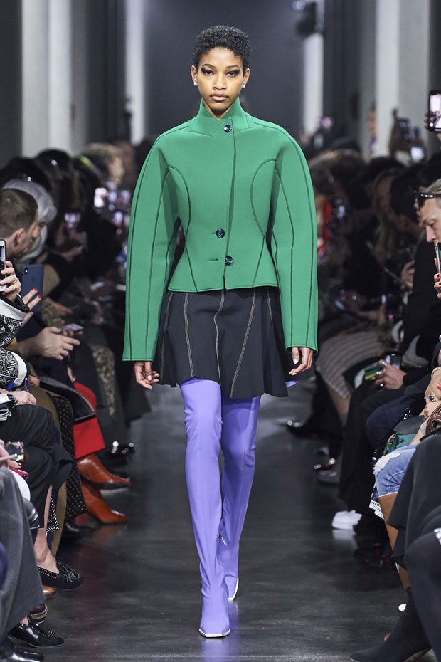 Casey Cadwallader unveiled his Fall Winter 2019.20 collection for MUGLER, on Wednesday, February 29th, during the recently wrapped up Paris Fashion Week. Borrowing the cues from architecture, the collection exudes aerodynamic elegance, through incisive structure and controlled volumes.