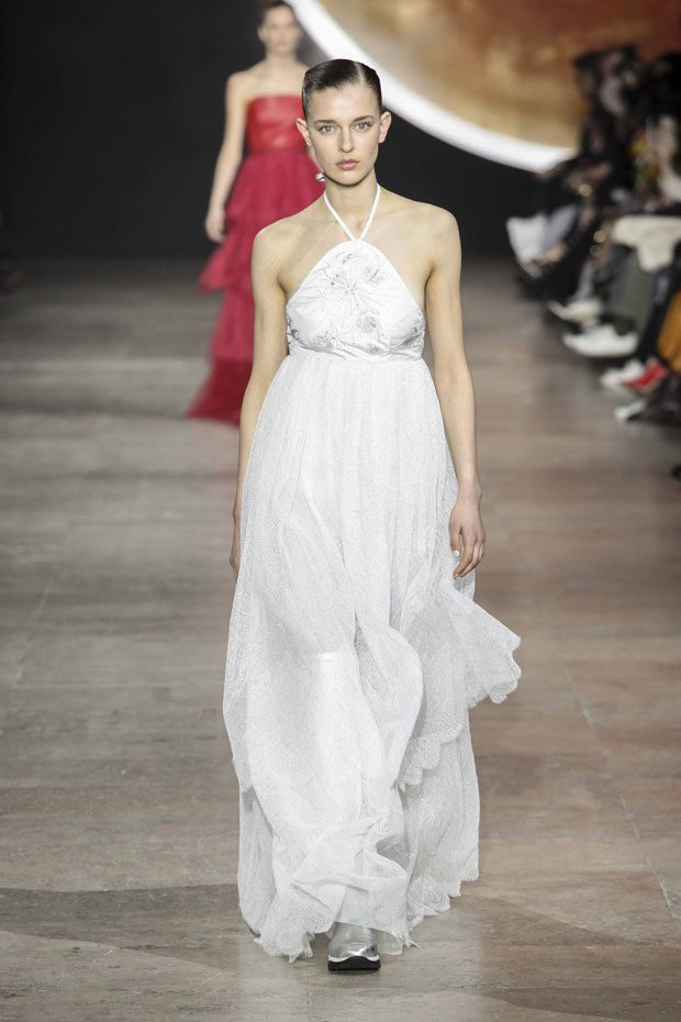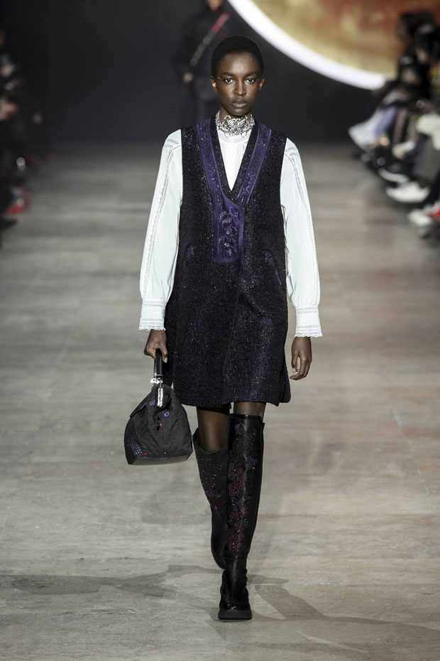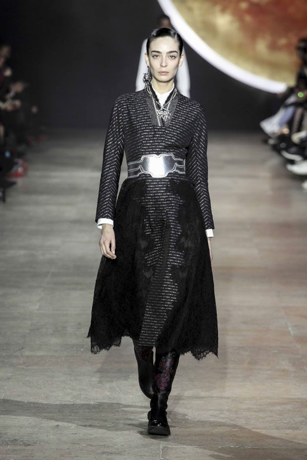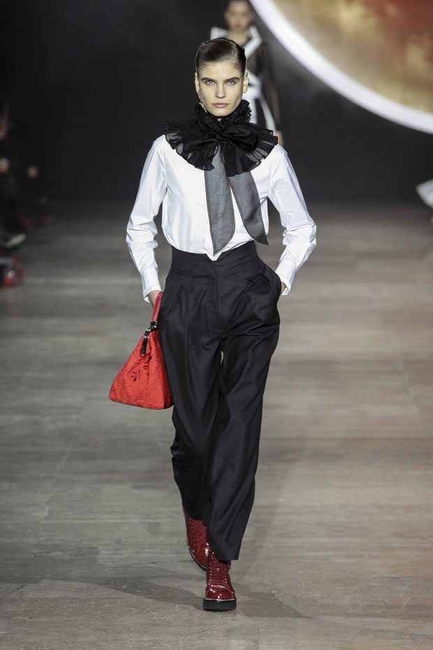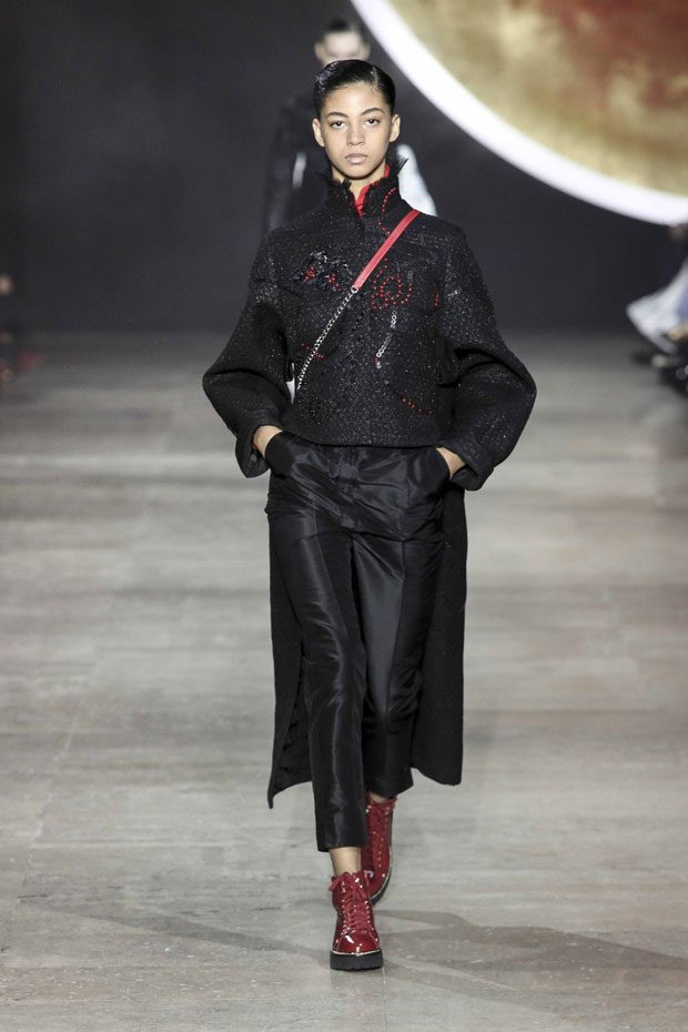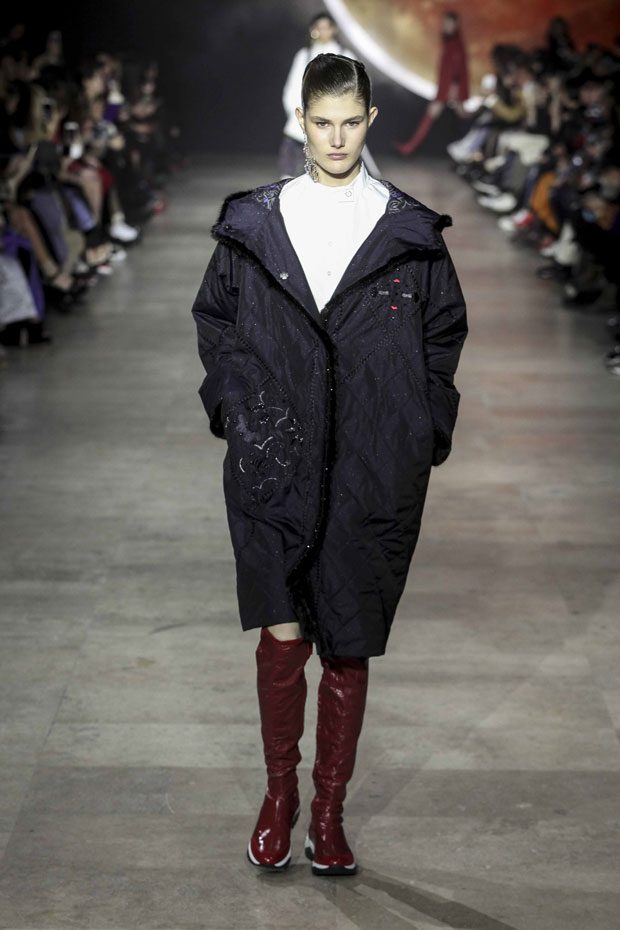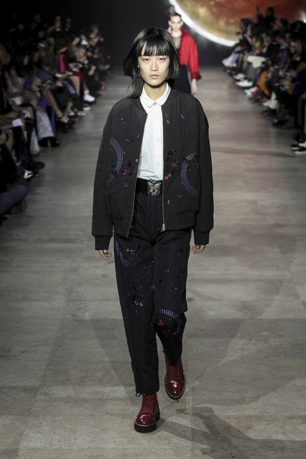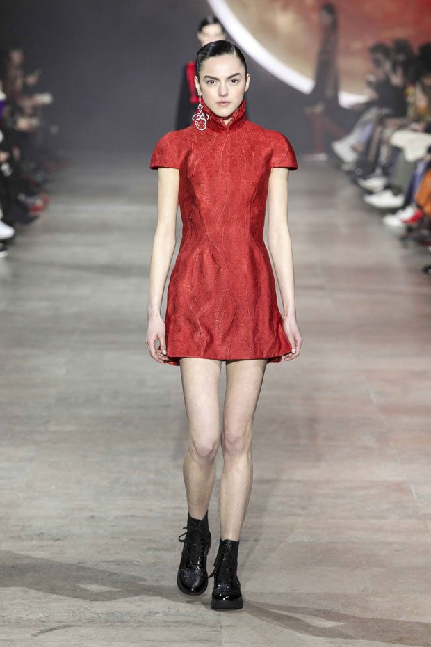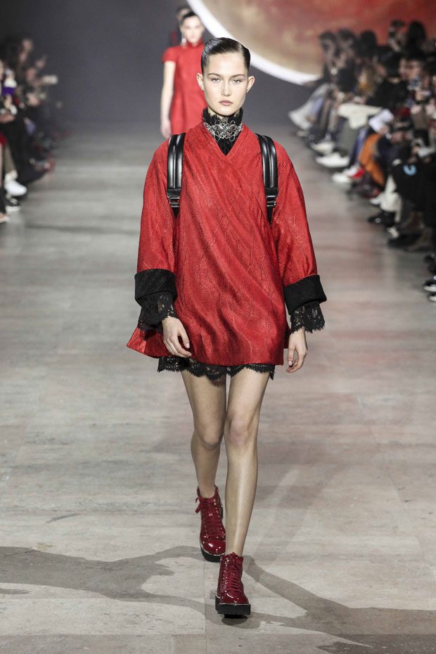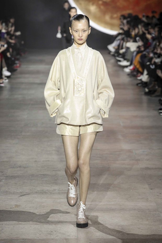 The Mythology turns into doctrine and self-expressive style is transformed into fashion attitude. On occasion of the 41st anniversary of the brand, Design director Shiatzy Chen aims to perpetuate the legacy of the brand based on the concept of deep affection and create an exclusive contemporary brand philosophy through a fusion of Miao mythology and totemism with the glamour and complexity SHIATZY CHEN is renowned for. The concept of deep affection adopted by Design director Shiatzy Chen is derived from the image of the baby carrier (cloth used by mothers of the Miao tribe to carry children on their backs) extracted from tradition in an effort to convey the sharp edginess originating in oriental fashion. – from Shiatzy Chen
