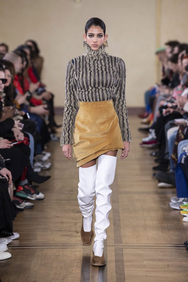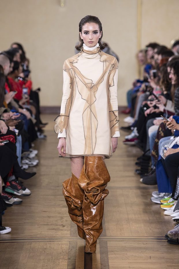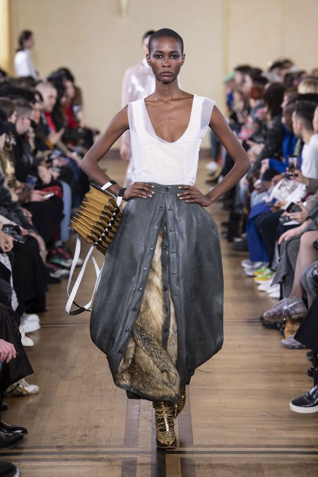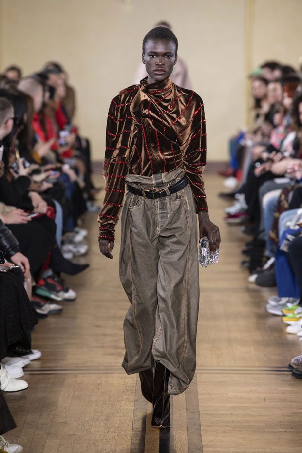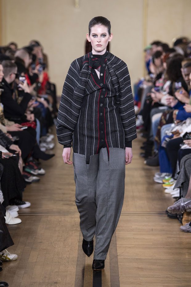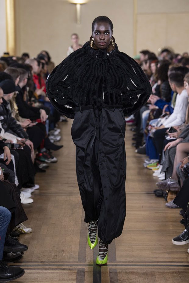 Glenn Martens unveiled Y/PROJECT Fall Winter 2019.20 collection, on Thursday, February 28th, during the ongoing Paris Fashion Week. Presented at the 18th century’s La Maison de la Chimie, the collection mixes historic references with modern influences.