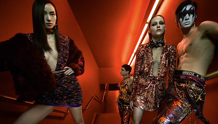 Supermodels Sasha Pivovarova, Mariacarla Boscono, and Fei Fei Sun team up with Andreas Wolf, Serge Sergeev, Alton Mason, Keenan Gyamfi, Noah Luis, and Louis Baines for DSquared2‘s Fall Winter 2019.20 advertising campaign captured by fashion photography duo Mert Alas and Marcus Piggott.