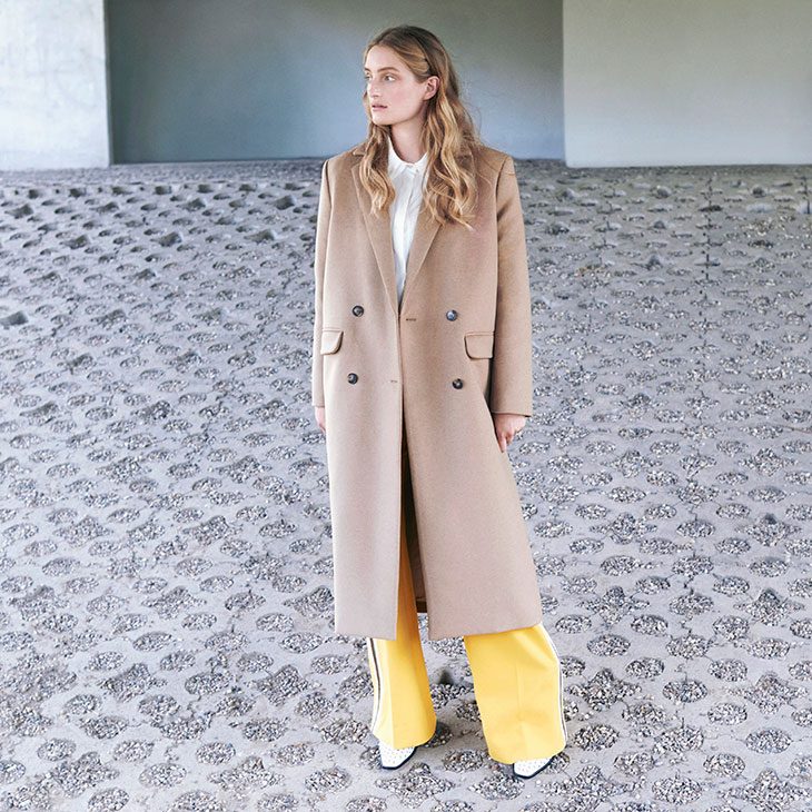 White shirt: Shoptye / Coat: Paul & Joe Sister / Trousers: Amanda Wakeley / Boots: Esau? Yori