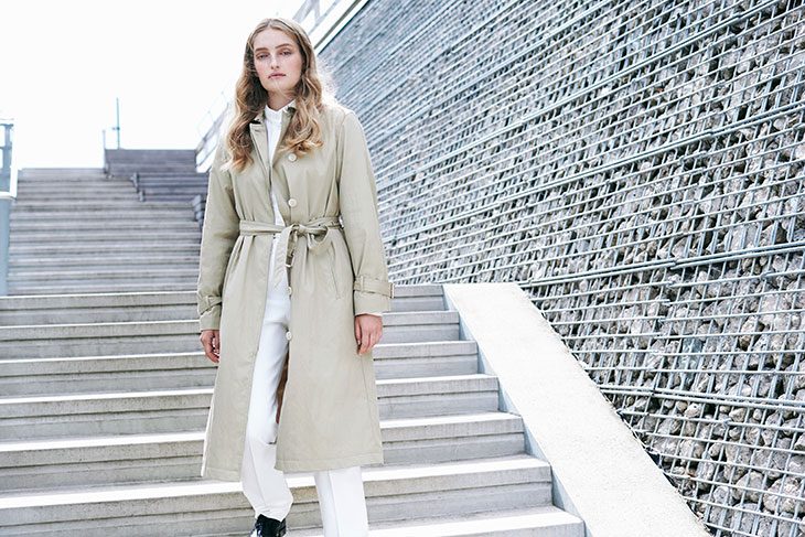 Shirt: Barena / Trench coat: Filippa K / Trousers: Joseph / Brogues: Grenson