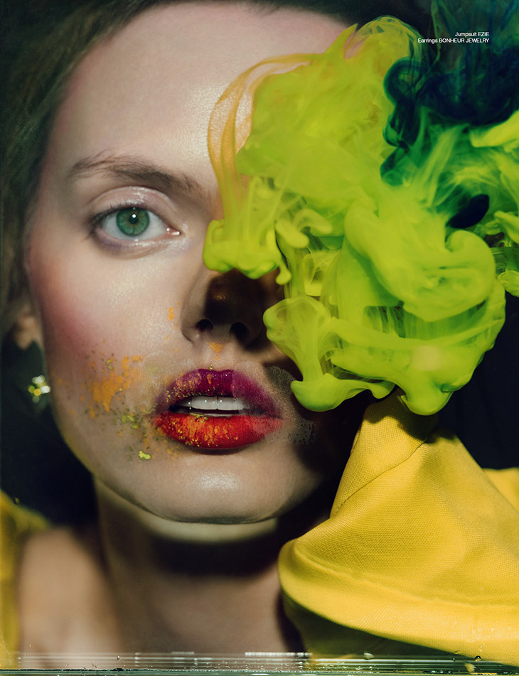 For Synthetic story, French stunner is wearing selected pieces from Laurence & Chico, Mona Sultan, Ezie, Bonheur Jewelry, Elizabeth Berdann, Adeam, Alexa Chapman, Tuleste, Alexis Bittar, Priscavera, Dauphinette, Eric Javits, Roxanne Assoulin, Issey Miyake, Aida Kaas, Lady Grey, Via Savienne, and Joanna Laura Constantine.