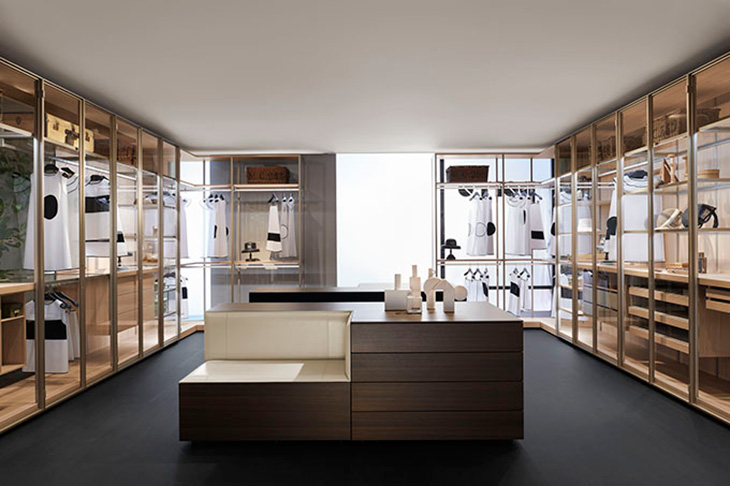 All images featuring the beautifully shaped PORRO collection of furnishing and display closets presented at Salone del Mobile in Milan. Courtesy of PORRO.