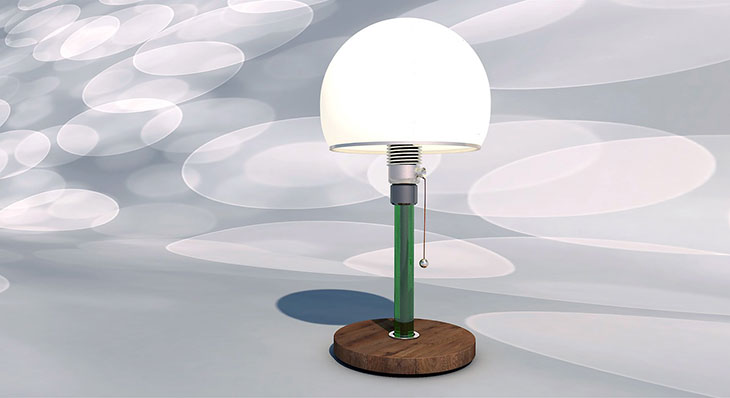 Lamp WA 24, also known as the “Bauhaus lamp,” was created in 1924 by Wilhelm Wagenfeld. Its metal and glass design is based on circular, cylindrical, and spherical shapes. Its balanced proportions and the functional clarity of the lamp make it perfect for the illumination of living spaces.