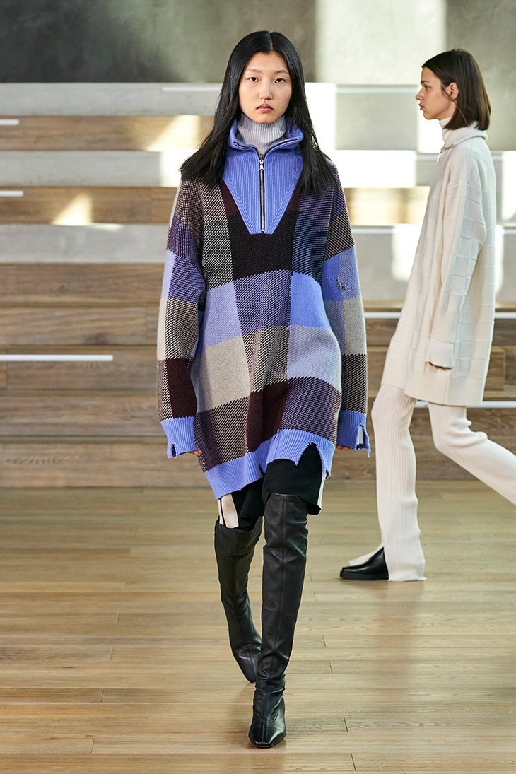 The Fall Winter colour blocks and pattern choices were inspired by Marzieli’s fascination with German Artist Paul Klee and his paintings. The collection is shaped with use of elegant neutral tones and complementing shades of grey and burgundy. “Sartorial charm and sporty comfort meet, generating an original overlapping of elements in perfect harmony with each other. Knitwear is the real protagonist of this collection: the beating heart of the brand, it emerges from the classic canons and through elaborate and unusual processes, new volumes and original combinations of textures and textures, she returns the vision and style of MRZ. A defined style, mostly monochromatic,” explains Marzieli’s team. For the Italian born designer knitwear is the stronghold, used throughout the collection it is the signature of her craft and design aesthetic.