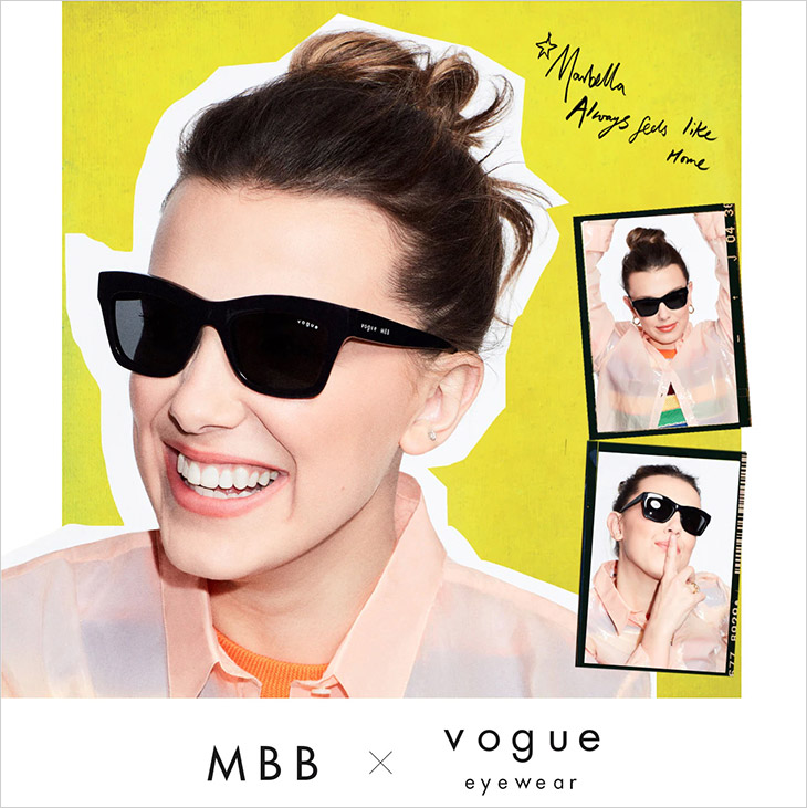 Stranger Things star Millie Bobby Brown teams up with brand Vogue Eyewear for the second capsule collection. This time MBB x Vogue Eyewear Collection is inspired by Millie’s favorite cities such as Marbella, London, Florence, New York and Los Angeles, and it features eight unique and fashion forward styles. The campaign was lensed by photographer and artist Quentin Jones, while behind the scenes reportage was captured by Millie’s big brother Charlie.