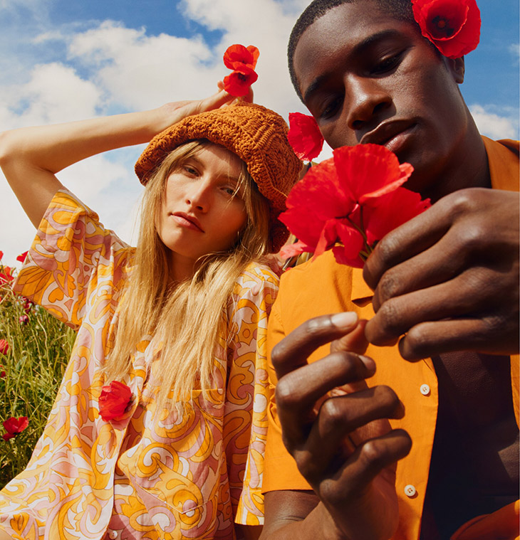 The collection celebrates flower power spirit, Summer holidays, friendships, and traveling. It brings prints in pastel and vivid colours, crochet pieces, stylish combos, maxi dresses with volume, and cool accessories for women, and light-washed denim, shirts, and gilets for men.