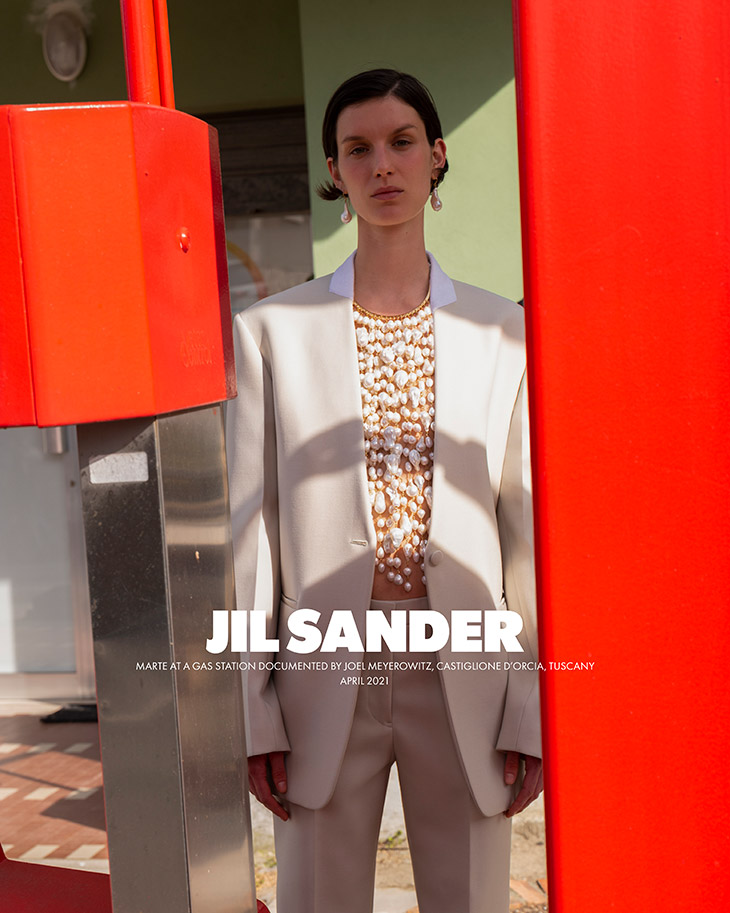 Fashion house JIL SANDER enlists the legendary photographer Joel Meyerowitz to capture their Fall Winter 2021.22 campaign featuring top models Marte Mei van Haaster and Malick Bodian. In charge of art direction was Heiko Keinath. Meyerowitz captured the campaign in Tuscany, where he lives, but also where designers Lucie and Luke Meier both lived when they first met, and where some of the most refined pieces of their collections are handmade by artisans. The campaign is part of an ongoing collaborative project for Jil Sander, and will be published into a book.