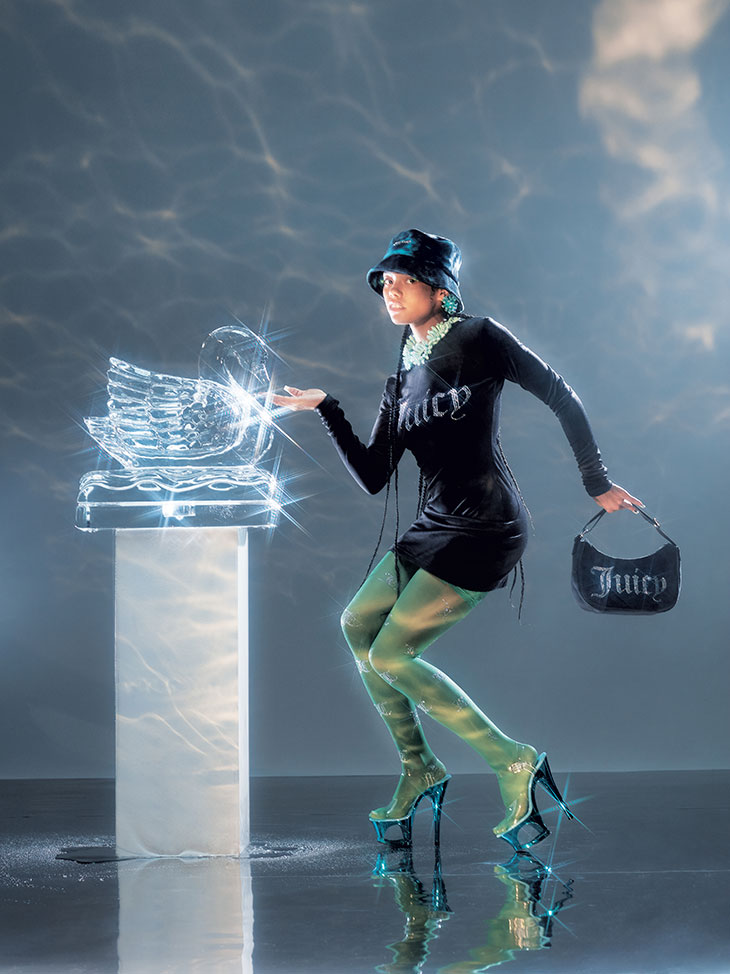 Against the backdrop of a changing global dialogue around what it means to ‘be in the spotlight’, Juicy Couture renders its campaign stars as young champions. The campaign celebrates female resilience and showmanship, looking to icons then-and now; From the legends who dominated the 80s’ musical landscape, by way of 90s hip-hop ensembles, to the ultimate muses: the young women lighting up the Tokyo Olympics. – from Juicy Couture.