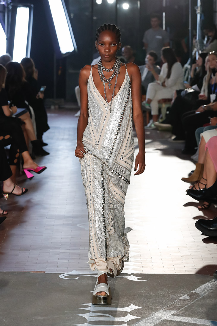 Designer John Richmond presented his Spring Summer 2022 Collection, that explores the brand’s roots, On September 25th, during the ongoing Milan Fashion Week. The collection also explores the punk aesthetic, and “I can do what I want” attitude. It features tailored, customized sexy suiting, studs and heavy chains. Color palette is monochrome with flashes of sparkle. This season, the collection is about looking and feeling cool, and it’s a reflection of everything that John Richmond loves.