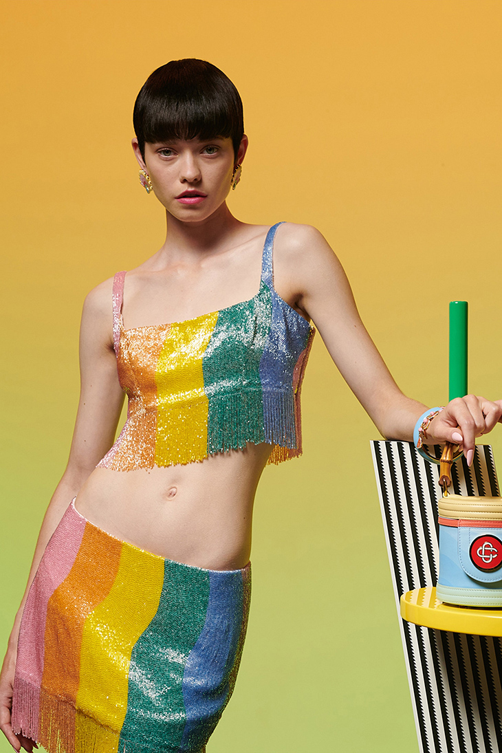 Fashion designer Charaf Tajer presented Casablanca Spring Summer 2022 Collection during the recently finished Paris Fashion Week. The collection is titled ‘Masao San’ after Tajer’s close friend, and it represents an homage to friendship. Charaf Tajer was also inspired by the Memphis movement that came out of Milan in the 80s, which features bright colors and cartoonish shapes.