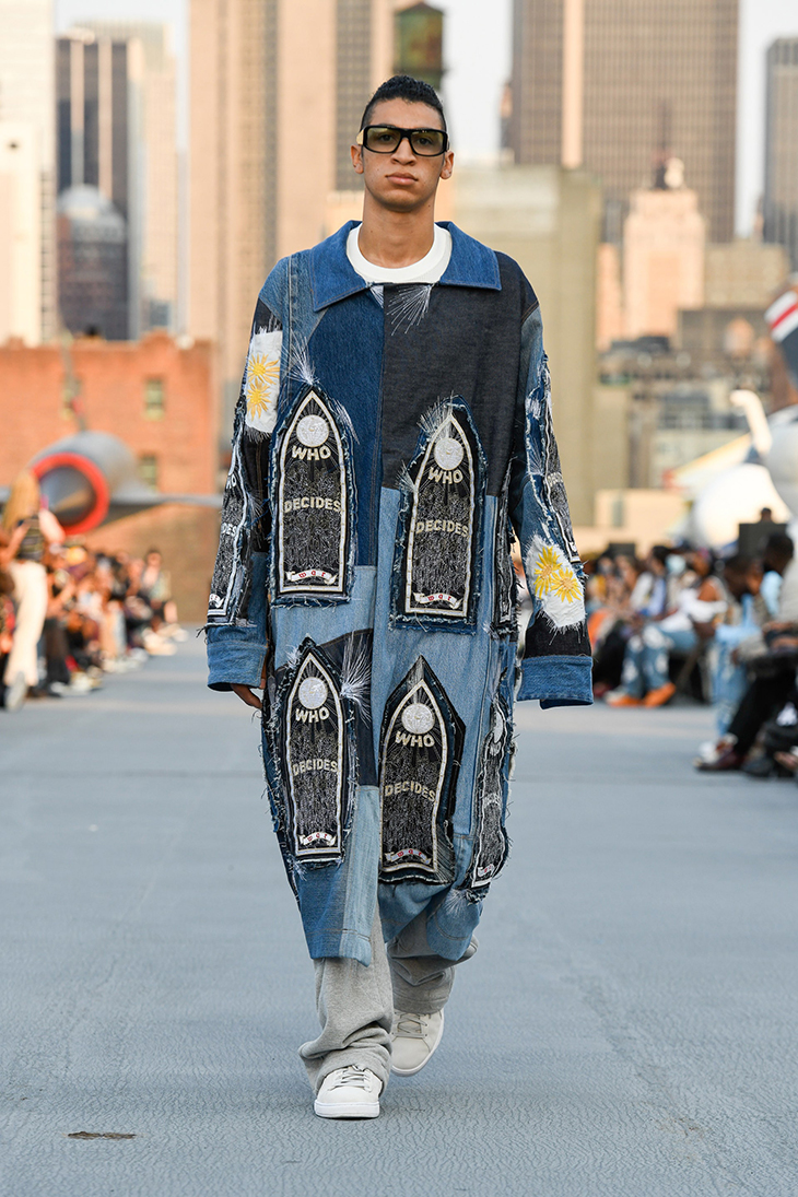Fashion designers Everard Best and Téla D’Amore presented Who Decides War Spring Summer 2022 Menswear Collection at Interpid, the decommissioned WWII aircraft carrier-turned-museum, during New York Fashion Week. The collection presents the culmination of everything that the designer duo have experienced and the things that really mean the most to them.