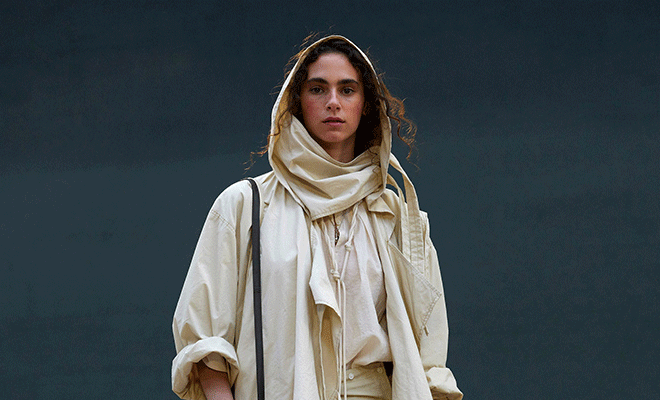 When you wake up in the morning and open your closet, you can dress simply, assembling an outfit more freely and with greater immediacy. Everything needs to be more composite, accessible and modular—outfits should come together easily. There are shapes common to all the seasons and each collection is created as a continuation of the last. We have opted for aterials and construction that offer more flexibility—the collars are convertible, the volume can be adjusted, and light hoods offer protection from the sun and rain. For example, a loose-fitting hooded dress can be worn at the beach, as an evening dress with a belt, or as a housecoat. The materials still look pretty when wrinkled. – Sarah-Linh Tran