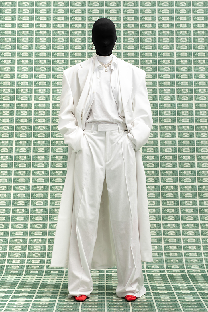 Fashion designer Guram Gvasalia presented Vetements Fall Winter 2022.23 menswear and womenswear collection via digital lookbook. Inspired by the new generation of wealth and Bitcoin millionaires, the set design features a 1,000 non-existent $1 million bills.