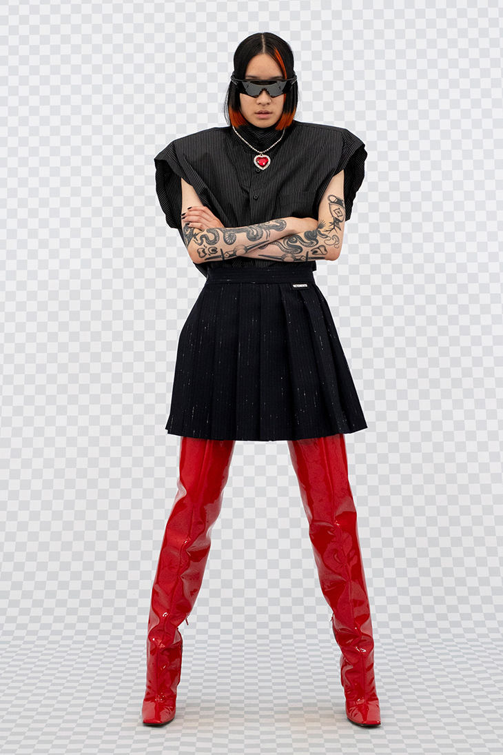 Fashion designer Guram Gvasalia presented VETEMENTS Spring Summer 2022 Collection with a lookbook. The backdrop of the lookbook is the Photoshop checked background, which symbolises the collection theme. Gvasalia is questioning what is even a reality today, is everything photoshopped or not, are we the consumers of the internet or the other way around.