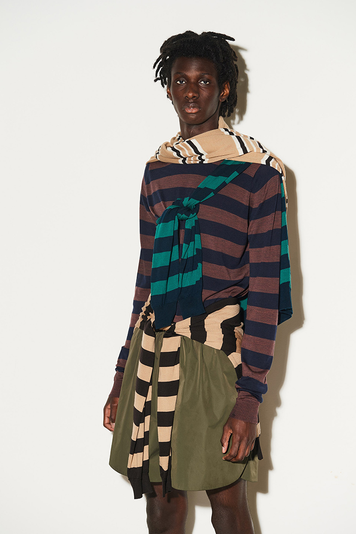 Designer Lou Dalton presented her Spring Summer 2022 Menswear Collection as a part of London Fashion Week Men’s. The collection was made in collaboration with British knitwear specialist John Smedley, with whom the designer first worked six years ago. Dalton’s looks are made with sustaianble wools and check blends, recycled nylon and more envorimental friendly materials.