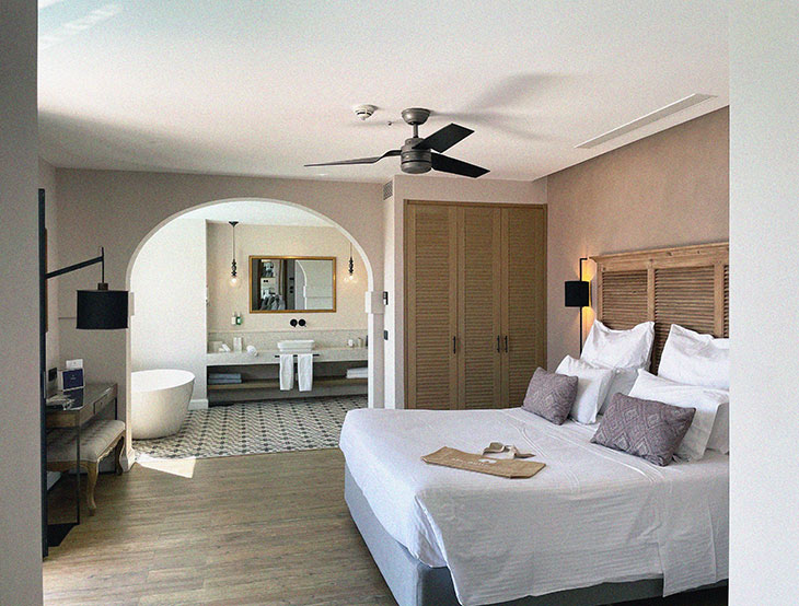 With its 70 junior suites, deluxe suites and villas, the hotel offers a 180 degree view across the Ionian Sea. The rooms are contemporary in design with neutral tones, combined with a blend of wooden and traditional features, providing a sense of luxury, relaxation and tranquility.