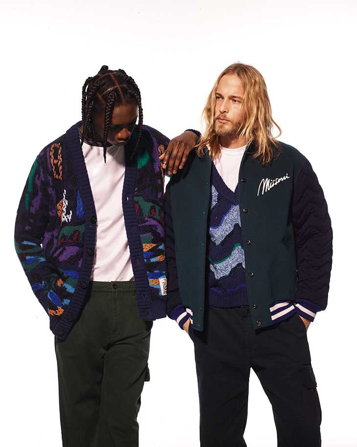 Knitwear is of course in the spotlight, from the new jacquard pieces featuring abstract motifs with an impactful graphic appeal, to the iconic zigzag and the rashel. The collection also features a number of cardigans inspired by the brand founder Tai Missoni. Knitted joggers or fabric trousers with clean lines or utility details are conceived as ultimate essentials in a men’s wardrobe injected with with an urban spirit.