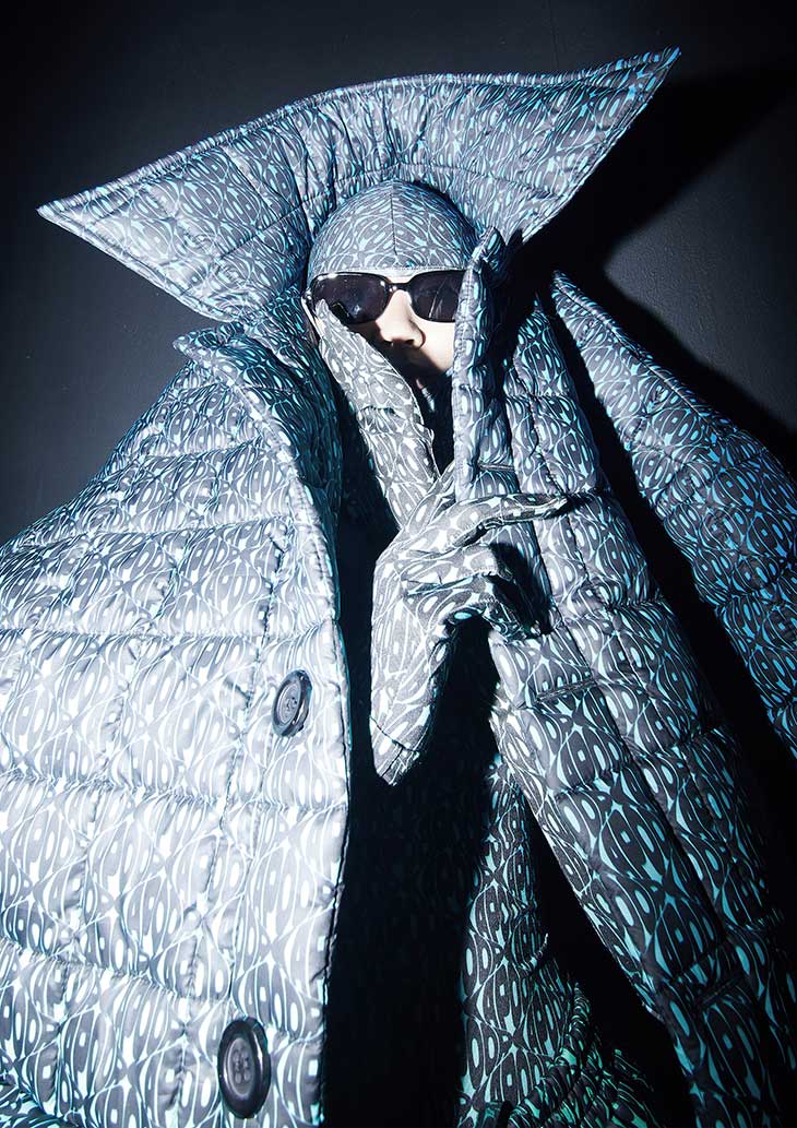 Fashion brand DHRUV KAPOOR presented the Fall Winter 2022.23 Womenswear Collection, on February 24th as a part of the ongoing Milano Fashion Week. The Soul-Tech II collection explores squared silhouettes, bold, scaled up patterns and embroideries. Poster print series, reminiscent of the 1970s-explores other-worldly concepts and advanced capabilities of the human mind – “Back to Source” – our reunion with source and “Soul Talk” that sheds light on telepathy-the unspoken and unwritten language of the “soul”. The collection mixes minimal and maximal with combination of old and new textiles, upcycled and custom-made.