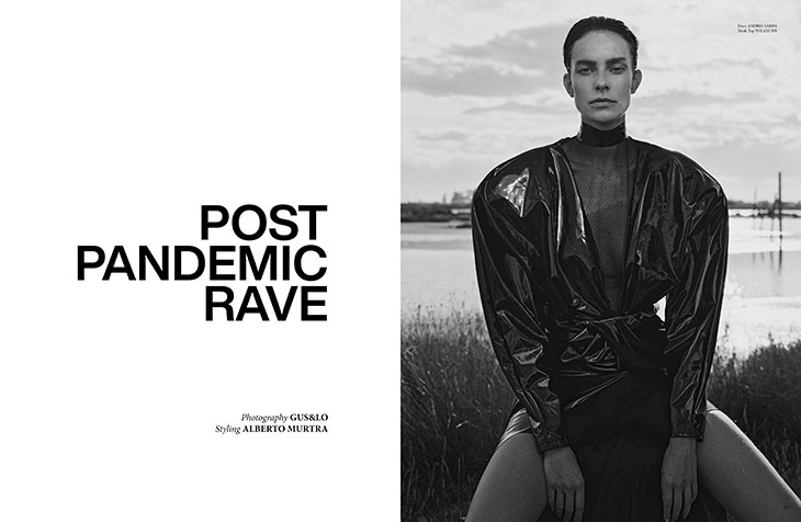 The striking Naomi Van Kampen at Lineup Models Management stars in Post Pandemic Rave story captured by fashion photography duo Gus&Lo for our DSCENE Magazine‘s Unfiltered edition. In charge of styling was Alberto Murtra with hair styling and makeup from beauty artist Rafit Noy,
