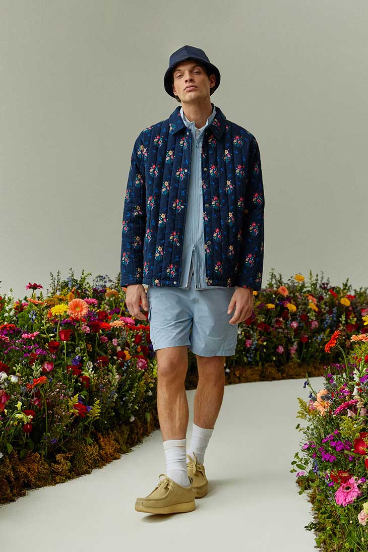 Fieg and his design team have for Spring Summer 2022 menswear season presented a 34 looks fully developed menswear collection. Buyers and fans are like are sure to have plenty to choose from. In addition to hoodies and footwear Kith this time comes with fully developed outerwear. Light Spring jackets stand out nicely in the overall shaping the labels aesthetic. The lookbook itself for Spring 1. is a true how to style Kith guideline in photos. The design team takes florals for spring literally, in the set design but also the prints and embroidery. Flowers are reoccurring motif for Kith this season, and if anyone can make men wear florals it surely is Ronnie Fieg.
