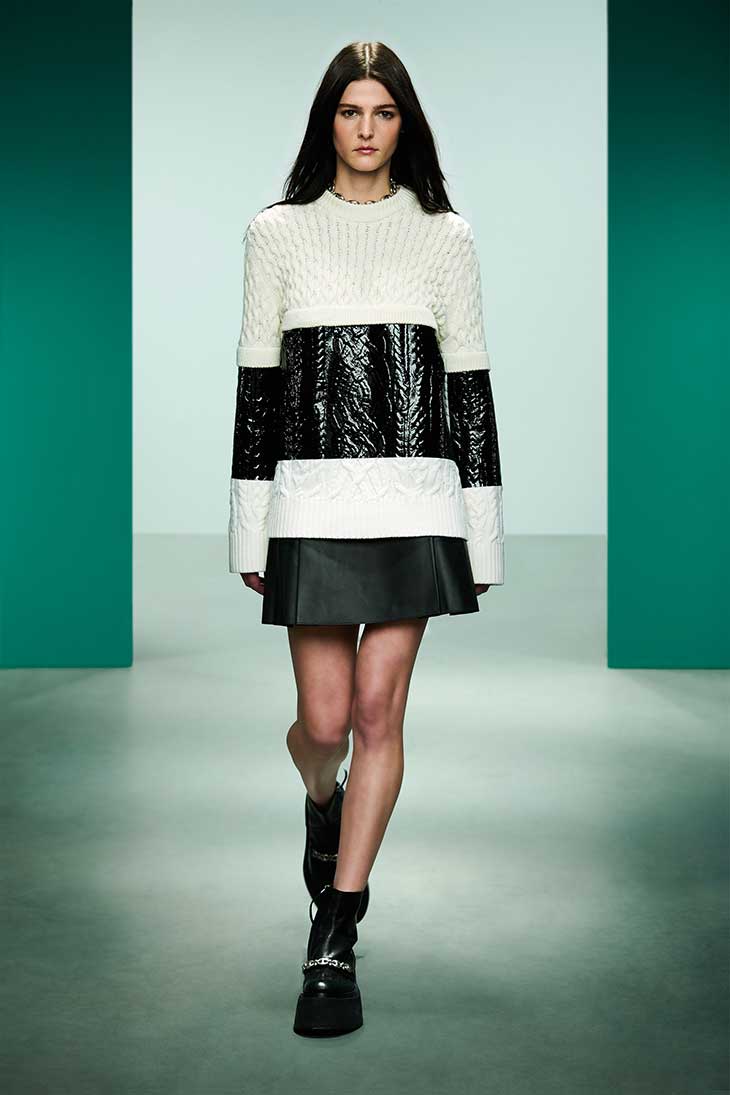 However digital runway turned lookbook shoot to the side Karl Templer shows his got the label under reigns for the Pre-Fall 2022 womenswear look-books. The collection explores the newly setup aesthetic for PORTS. Templer this time leaves the colour palette to the side, instead the pre-fall 2022 is predominantly focusing on black and white colour blocking. With an exception of a brown leather toned jacket, and fur outerwear jacket taking a stand. A stand is we are still doing fur. That same colour blocking is making the collections detailing far more playful. However the same colour blocking at moment brings us into the over-designed, and even dated sphere.