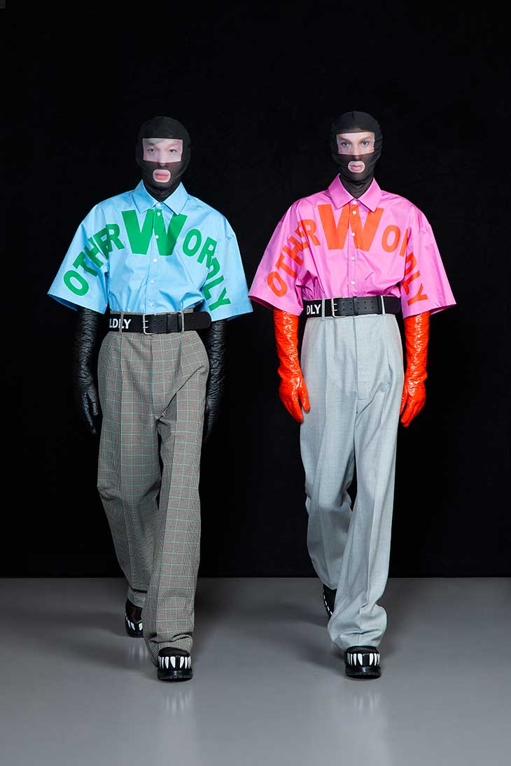 Fashion brand WALTER VAN BEIRENDONCK presented the Fall Winter 2022.23 Collection with a digital show, on Sunday 23 January, during the recently finished Paris Fashion Week. For this season, designer introduced monochromatic color schemes and articulated structures. This collection saw a major focus on the shoulder as the essential body part. The Otherworldly collection video was directed by Bjorn Tagemose, with production by Katarina Vercammen. The designer collaborated with Antwerp-based brand Komono for the collection eyewear pieces. Hats and masks were the work of Stephen Jones.
