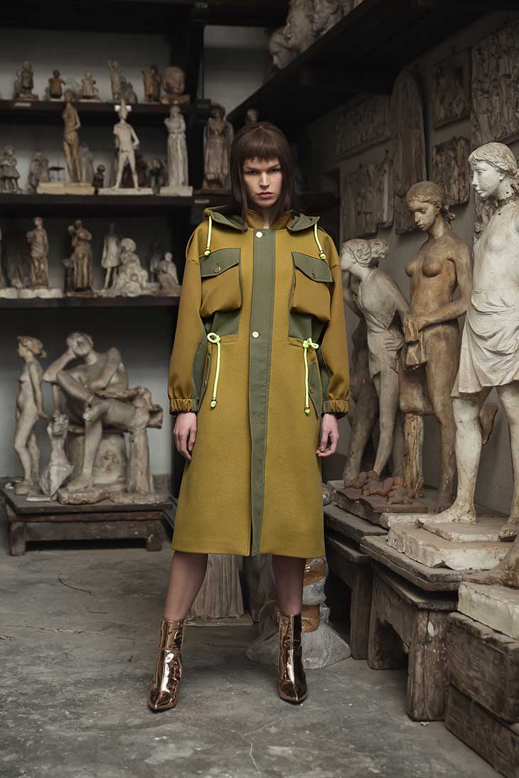 Fashion designer GILBERTO CALZOLARI presented the Fall Winter 2022.23 Womenswear Collection, during the recently finished Milano Fashion Week. The Ecomachìa collection was inspired by uniforms. From coats to colors, the collection rethinks and reasembles the military garments into feminine and romantic pieces. The looks are made from susitanable and upcycled looks like regenerated carded wool, high-performance cotton, bio silk and more.