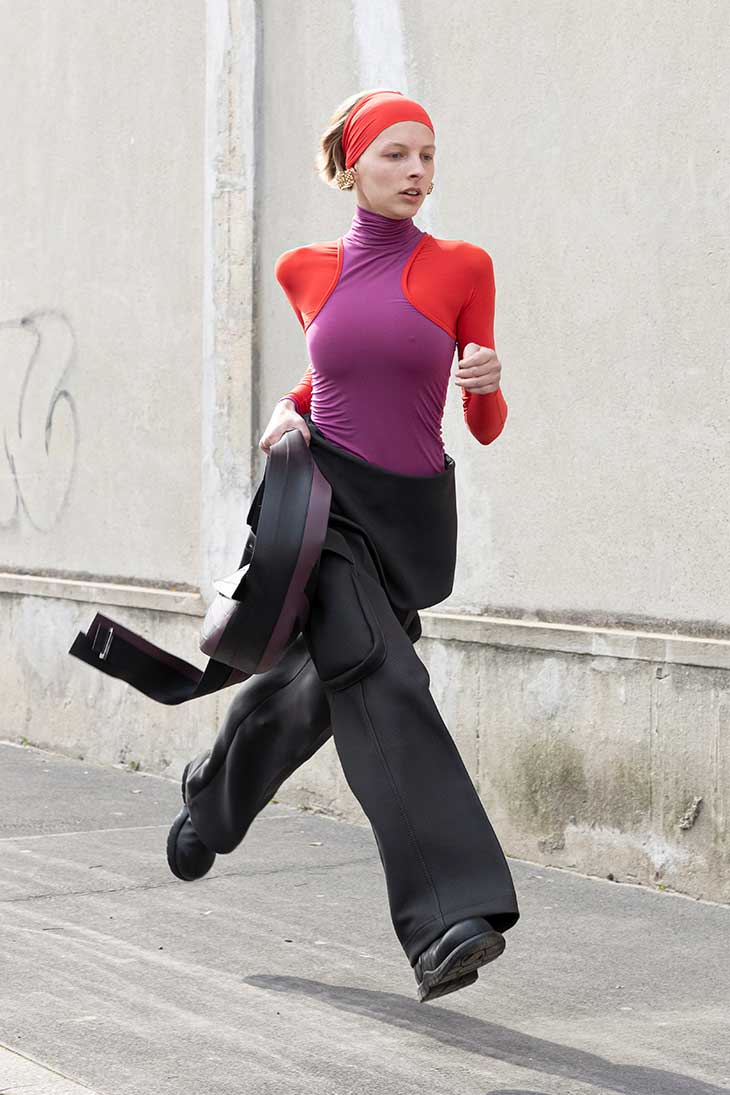 Designers Simone Rizzo and Loris Messina presented SUNNEI Fall Winter 2022.23 Collection, on February 24th, as a part of recently finished Milano Fashion Week. For this season, brand introduces stiff materials, bold proportions and structured tailoring. The collection focuses on jersey and knitwear. Brand’s recurrent nostalgia for the 1990s and 2000s is materialised in the comeback of pompom balls. Sunnei repurposes signature pieces along with eclectic, new experiments. Attention to details has become even more evident with a predominant presence of diagonal zippers on the front of dresses, skirts and trousers.