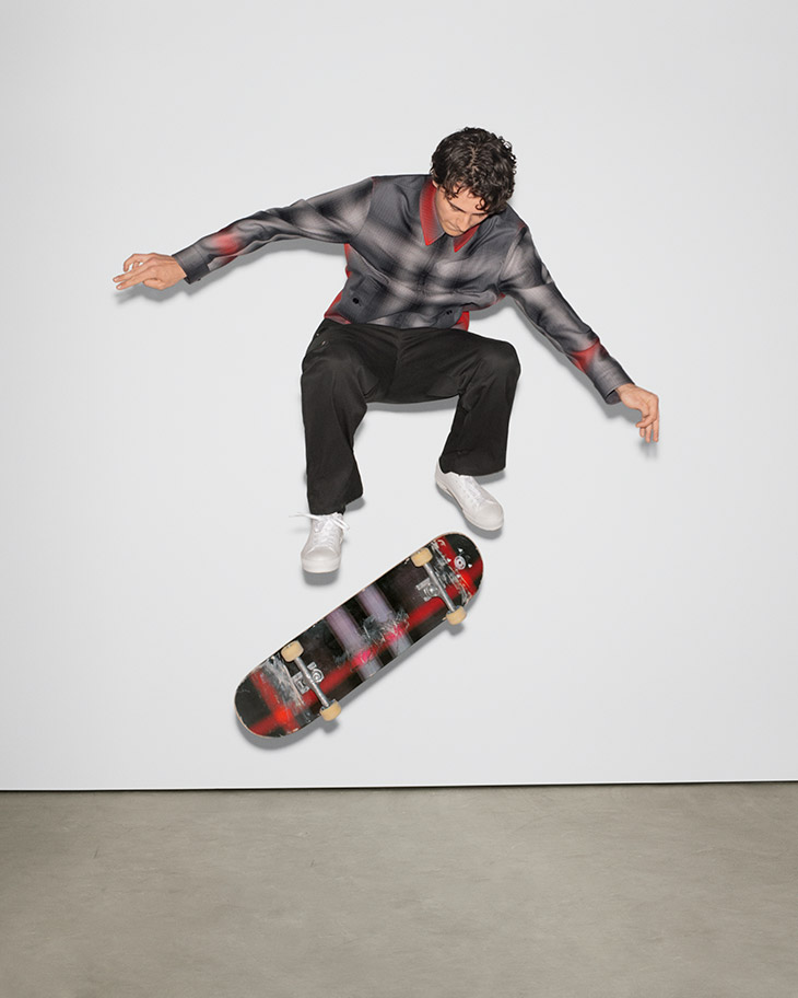 Luxury house BURBERRY and Amsterdam based brand Pop Trading Company team up for a Capsule Collection, that celebrates both brands’ passions for freedom of movement and creative exploration. A dynamic and youthful collection, inspired by global skate communities, features a new blurred Burberry Check in an exclusive colourway on technical parkas, zipped jackets, silk shirts and cotton cargo trousers alongside a crossbody bag, tote and bucket hat. Fashion photographer Ari Marcopoulos captured the campaign starring skaters An Vo, Calvin Ligono, Chima Chibueze, Jeff van der Veken, Noah Bunink, Rob Maatman, Rohan Manderson, amd Willem van Dijk. Beauty is work of hair stylist Sophie Anderson, and makeup artist Jimmy Owen Jones.