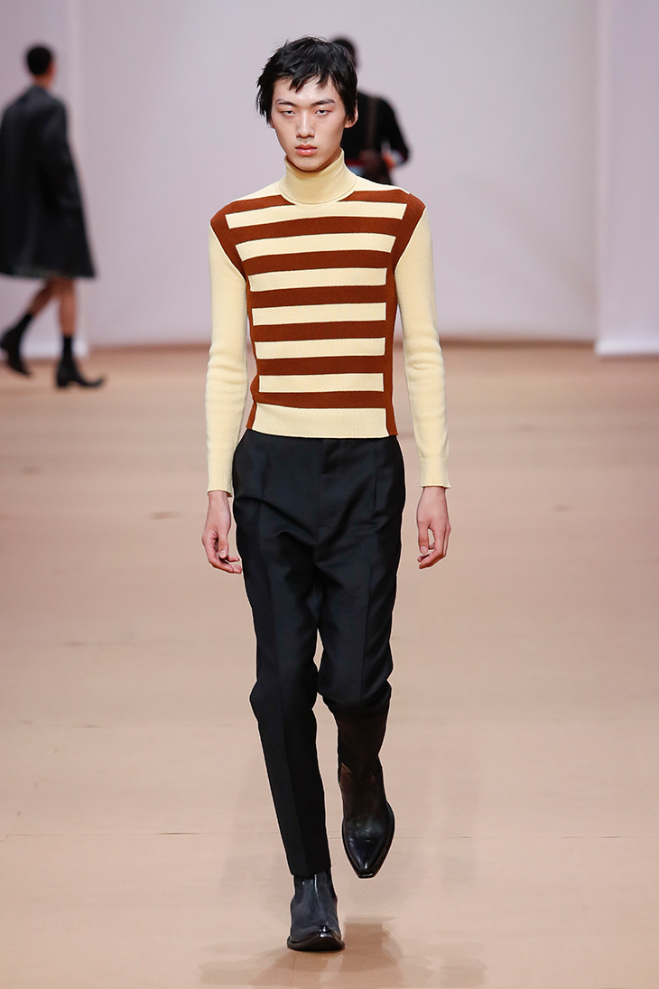 “The practice of design – of fashion – is one of decision-making, curation alongside creation. The tools of this collection are direct, recognizable, archetypal pieces – suits, overcoats, sweaters, shirts, denim, leather. Known garments are reinvented through context. There is always a complexity of thought behind apparently simple results, a process of refinement to uncover the fundamentals of dress,” adds Prada team.