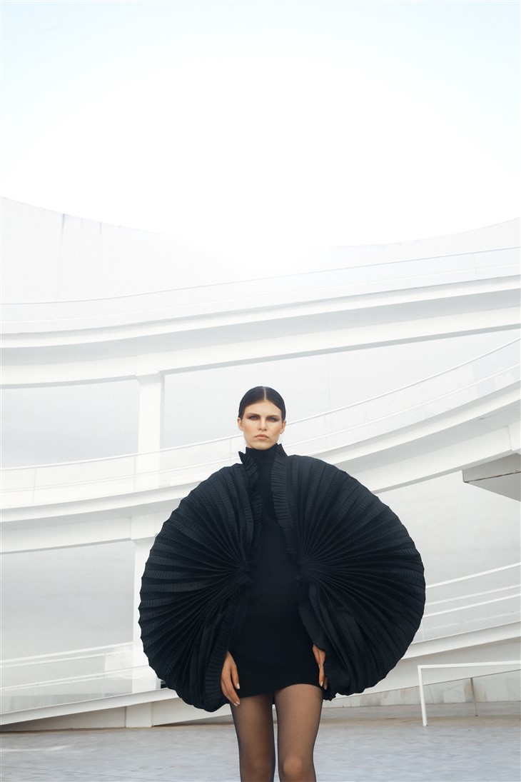 Spanish designer JUANA MARTIN presented her Fall Winter 2022.23 Haute Couture Collection with a campaign and runway show held during Paris Couture Week. For her fashion week debut, designer introduced Andalucia collection inspired by her land and her culture, a proposal faithful to her flamenco and avant-garde style. The collection features Martin’s signature black and white looks made mainly from wool, natural silk, organza and tulle, including different artisan elaborations in the applications of embroidery, rhinestones and crystals.