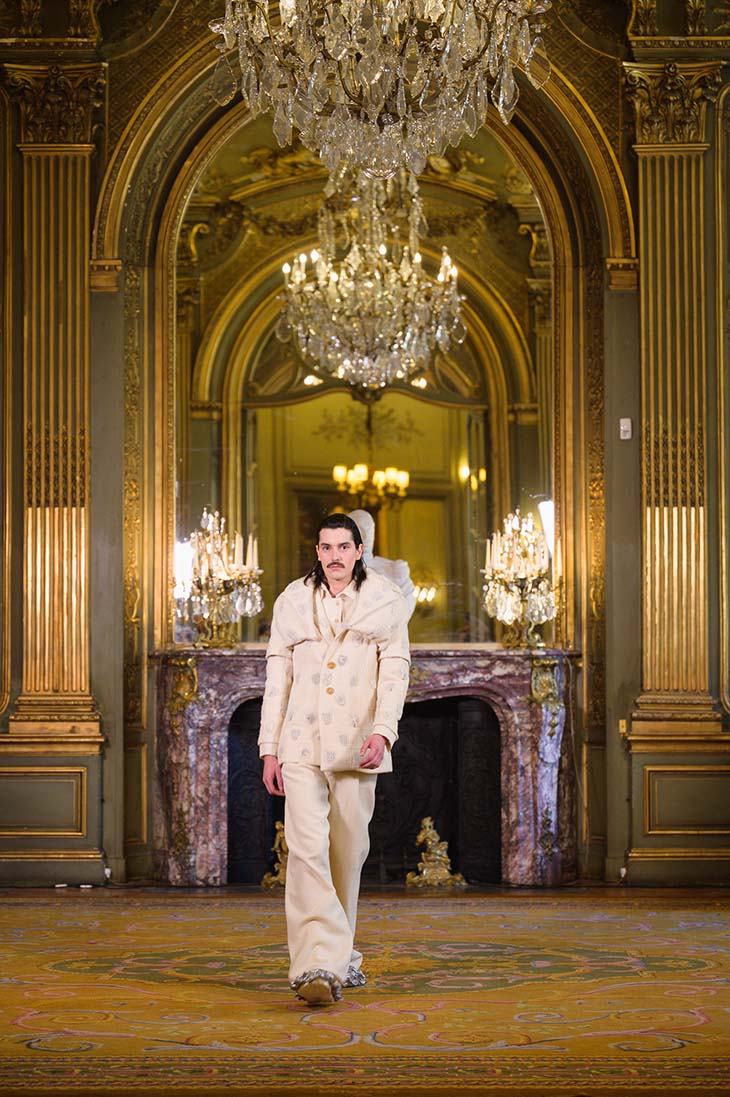 Andalusian designer LEANDRO CANO presented the Fall Winter 2022 Haute Couture Collection with a show during the Haute Couture Week in Paris. The collection CANO: The Dance of the Excluded delves deeper and makes a more introspective journey into that fi ctional medieval society, in which those who did not belong to ‘normality’ were excluded. The 11 looks collection introduces 11 diffrent archetypes and diffrent personalities celebrating designer’s 10 years in the fashion business.