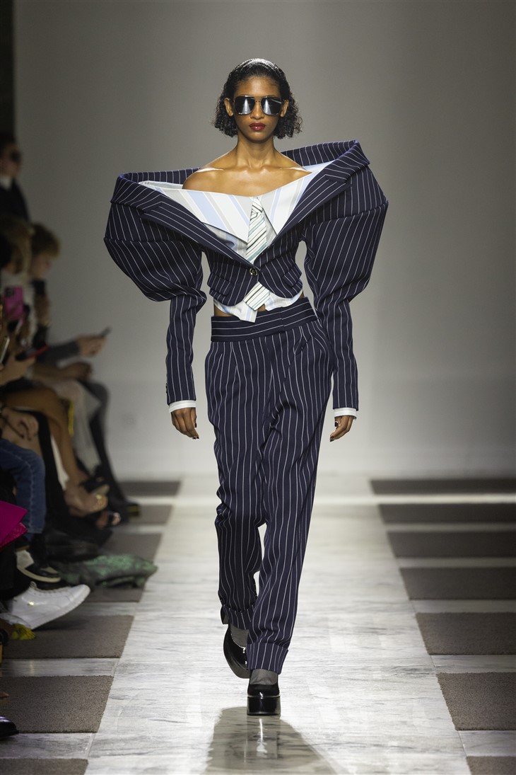 Dutch fashion house VIKTOR & ROLF presented the Fall Winter 2022.23 Haute Couture Collection, with a show held during Paris Fashion Week Couture calendar. The Power Dressing: A Fashion Show in Three Acts collection was presented in three parts: Before, The Power of Transformation and After. The first act introduces radically tailored looks, masculine jackets, coats and shirts are narrowed at the hips giving a frame to the body, silhouettes are inflated, as if they’re ready to explode. The second act brings a new perspective, while the third act presents radical tailoring, soft and draped shapes.