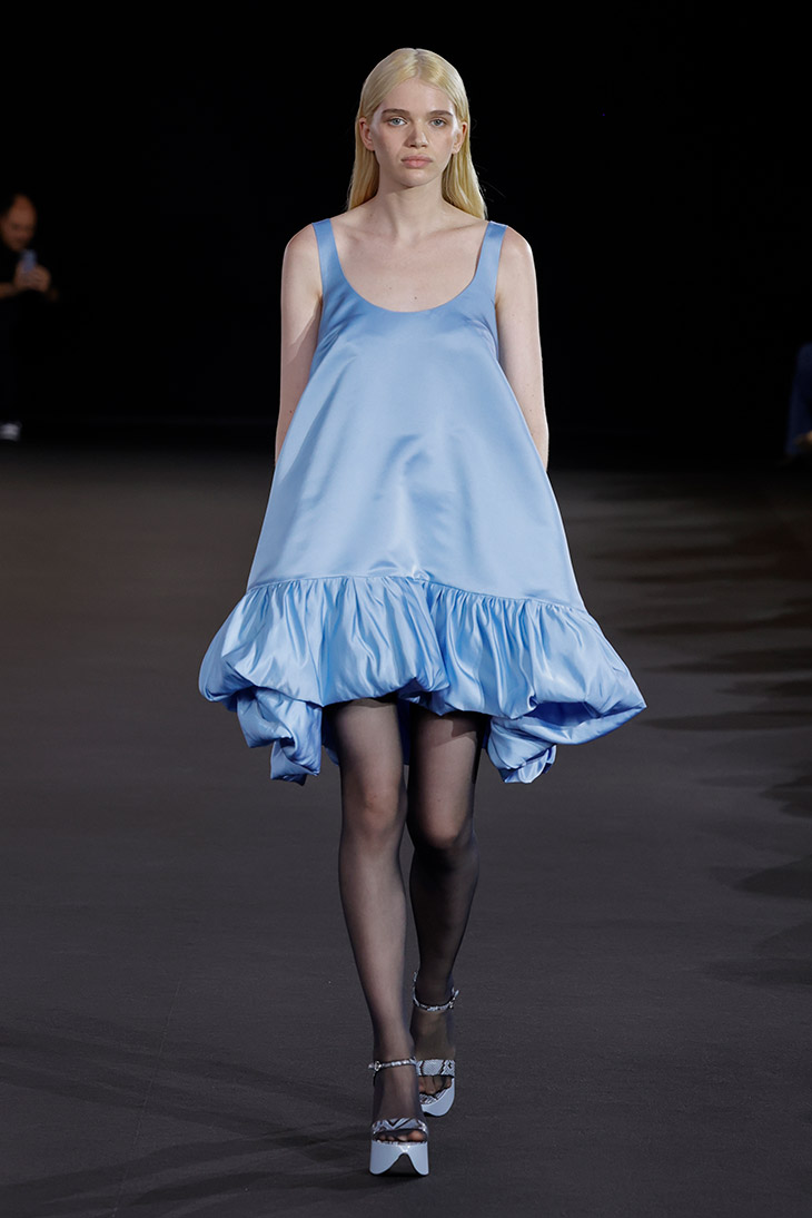 Fashion brand DEL CORE presented its Spring Summer 2023 Womenswear Collection, that was inspired by water and its fluid nature, on Wednesday, September 21st, during the ongoing Milan Fashion Week. The collection explores beauty as an idea of empowered and bold femininity, and it brings strength and precision. The shapes either flow effortlessly on and around the body, or are taut and exact. The draping is balanced by the sharpness of tailoring, while knitted bodysuits draw a bodycon silhouette; skin shows behind ribbons and slashes. Capes are made in the spirit of couture.