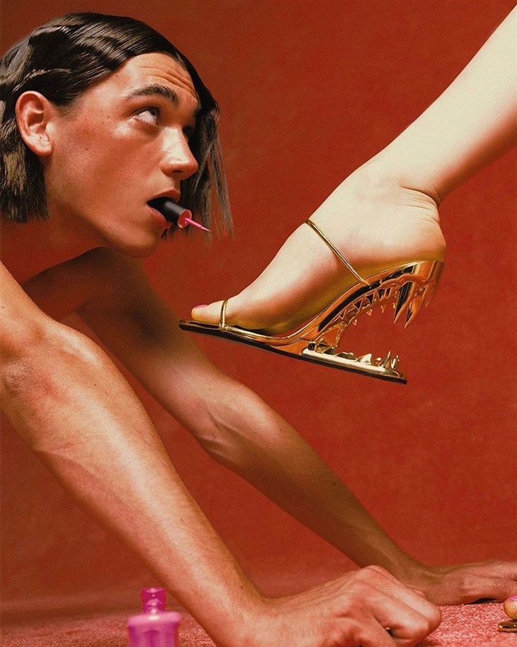 Fashion brand GCDS presented the Fall Winter 2022 Accessories campaign captured by fashion photographer Zhong Lin. In charge of styling was Vincent Wong, with hair by Ryo Narushima, makeup by Naima Bremer and nails by Tyler Phoenix. The production was the work of TIAGI, with set design by Andrew Lim Clarkson. The stars of the campaign are models Freddie Dadson and Malu. The campaign introduces the long-awaited Morso silhouette in both heel and boot iterations, and Comma bag ranging from green, blue to fuchsia.