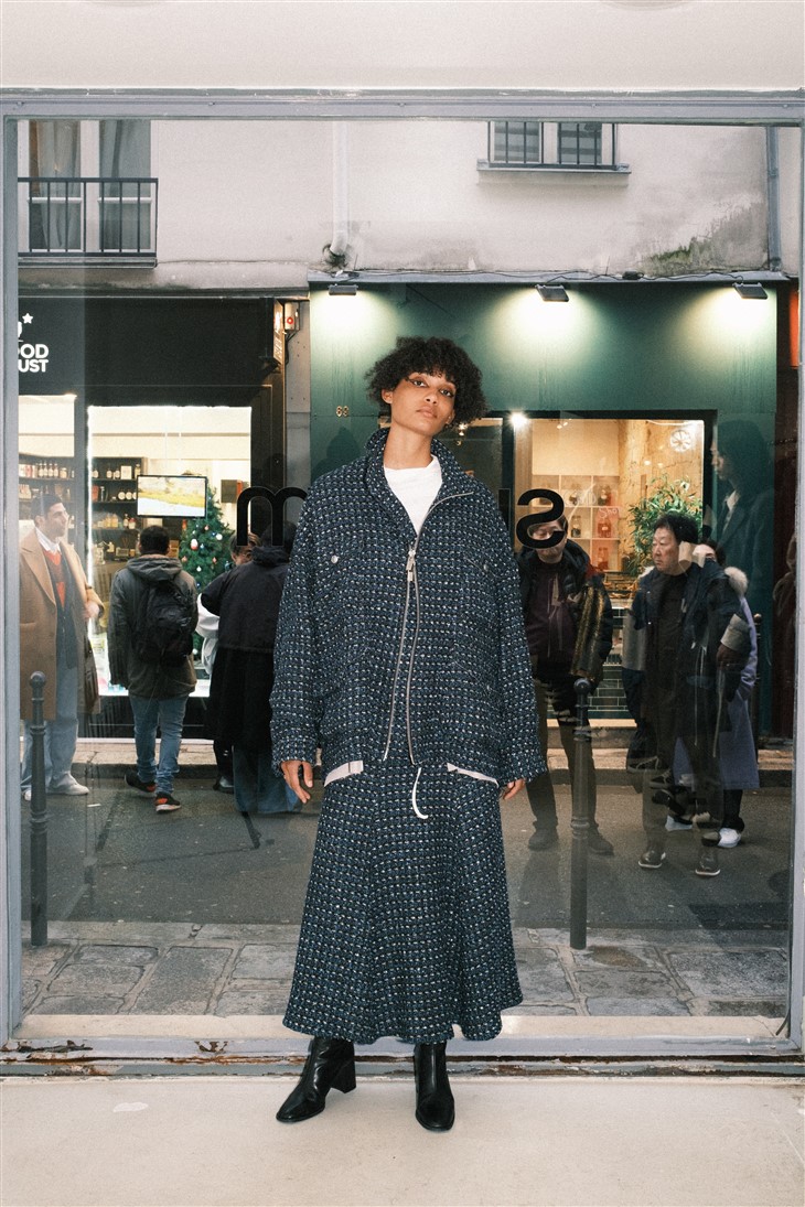 Fashion brand SULVAM presented their Fall Winter 2023.24 Collection with a presentation held on January 19th, during the ongoing Paris Fashion Week. For the collection, designer Teppei Fujita introduced pieces that intersect, overlap and crossover freely like punks, tattoos, kimono, and suiting. The clothes are not easy to handle, but they allow movement and breathability. The color palette for this season is mostly black, grey and navy blue, with touches of orange and golden beige.