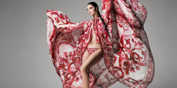 Luxury house DOLCE & GABBANA unveiled its Fall Winter 2023 Maiolica Collection with a campaign starring supermodel Mariacarla Boscono captured by fashion photographer Steven Meisel. In charge of styling was Karl Templer, with art direction from Fabien Baron, and casting direction by Rosie Vogel. Beauty is work of hair stylist Guido Palau, and makeup artist Pat McGrath. The collection was inspired by the colors of Sicilian flowers and gardens, and it brings vibrant and feminine silhouettes. Key pieces include calf-length bustier dress in majolica-print poplin, small Sicily handbag, patent leather thong sandals, long majolica-print chiffon dress, majolica-print twill shirt with slits, calfskin DG logo bag, and printed brocade fabric wedge sandals.