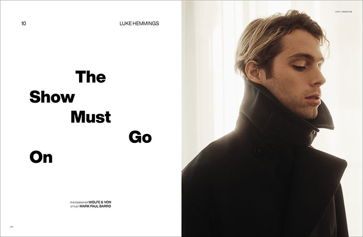 Elsewhere in the magazine, we team up with cover girl Esther-Rose McGregor, a true rising star on the scene who teams up for a striking shoot with Damien Fry. To the music superstar Luke Hemmings photographed in Los Angeles, who talked about his career and the world of music he creates solo and with his band members. I also recommend not missing our sit down conversations with actresses Natalia Tena, and Jess Alexander who both carve their own paths in the world of cinema. Another start of the issue is fashion entrepreneur George Heaton the founder of fashion label Represent, who reshapes the way industry can work today. Thus showing a whole new way to succeed on the already saturated fashion scene. What links our contributors is creativity, rather than creed, a belief that we are greater together than apart. But this approach is also integral to what it means to live and work in the world of the creative industries today.