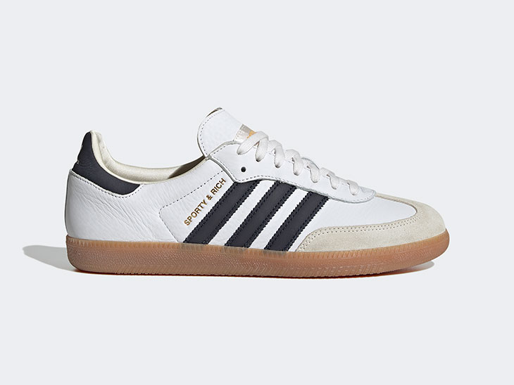 Drawing inspiration from vintage athletic wear, the collaborative collection breathes new life into archival pieces, skillfully infusing them with refined intricacies and unisex sizing. The iconic Samba OG Sporty & Rich makes its triumphant return in three captivating color palettes: pristine white, vibrant blue rush, and delicate cream white. Each pair arrives with a captivating pearl key-ring, perfectly nestled within a bespoke co-branded box.